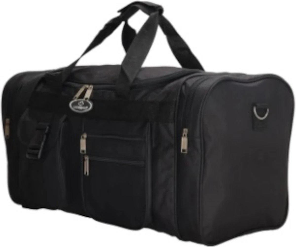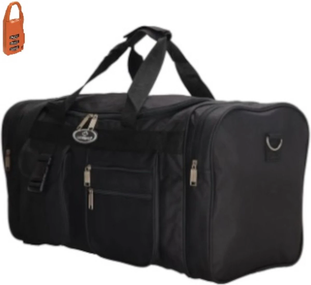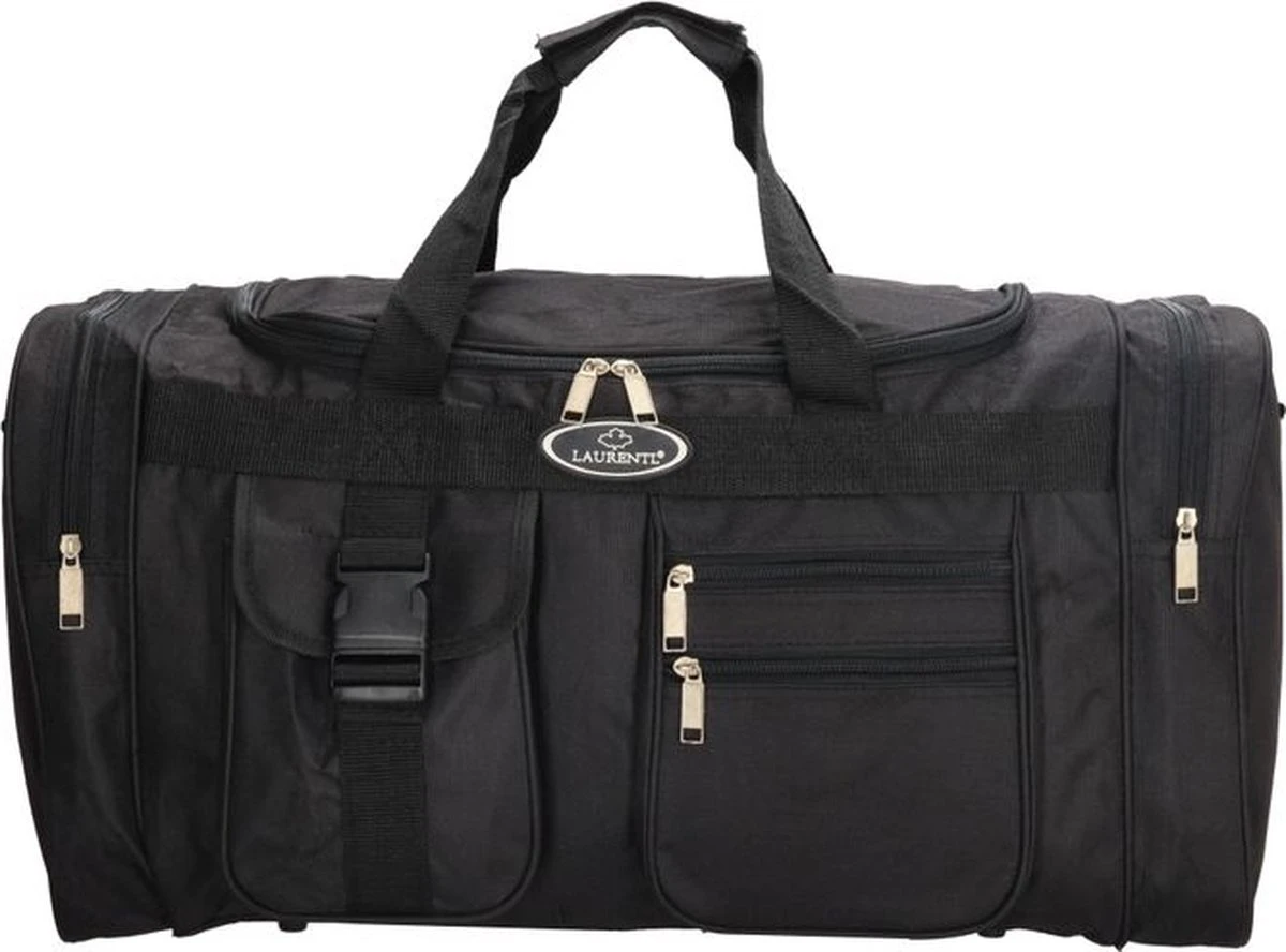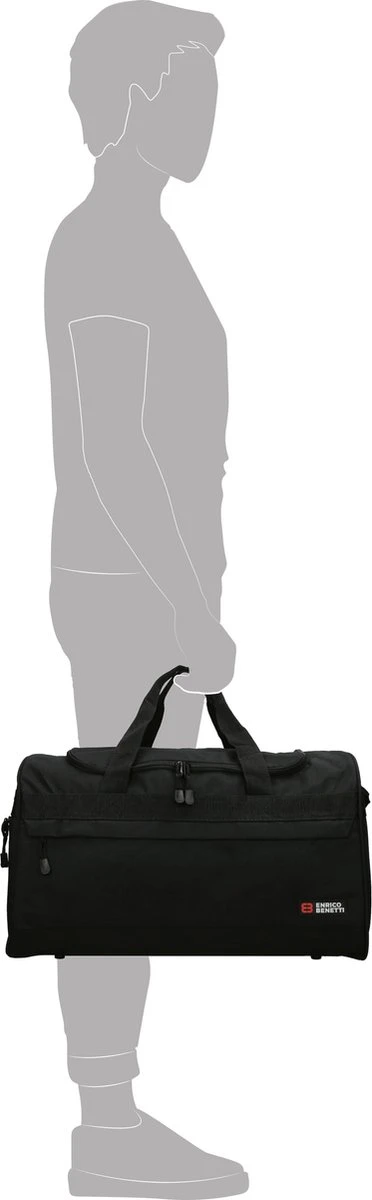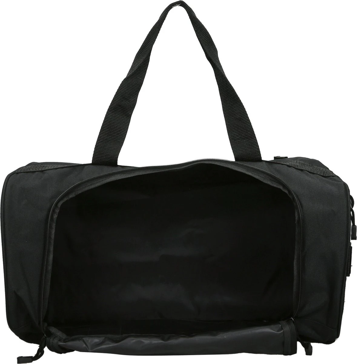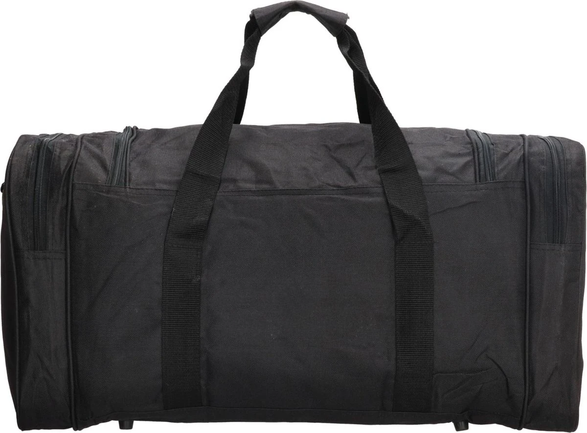 Sporttas/reistas zwart. Deze tas is voorzien van groot hoofdvak met rits, een voorvakje met verticale rits, 2 handvatten en een verstelbare schouderband.