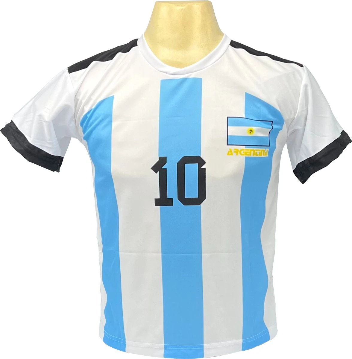Voor alle fans van sterspeler Lionel Messi hebben we het Argentinië tenue voor zowel kids als volwassenen in ons assortiment opgenomen. Deze replica voetbaltenue komt met een shirtje en broekje en is beschikbaar in bijna alle maten! Dat het goedkope voetbaltenue van polyester is gemaakt zorgt ervoor dat jij de komende seizoenen vooruit kan. Shirtje lucht lekker door waardoor deze o.a. zeer geschikt is voor gym, sporten, als pyjama, bij warm weer etc.