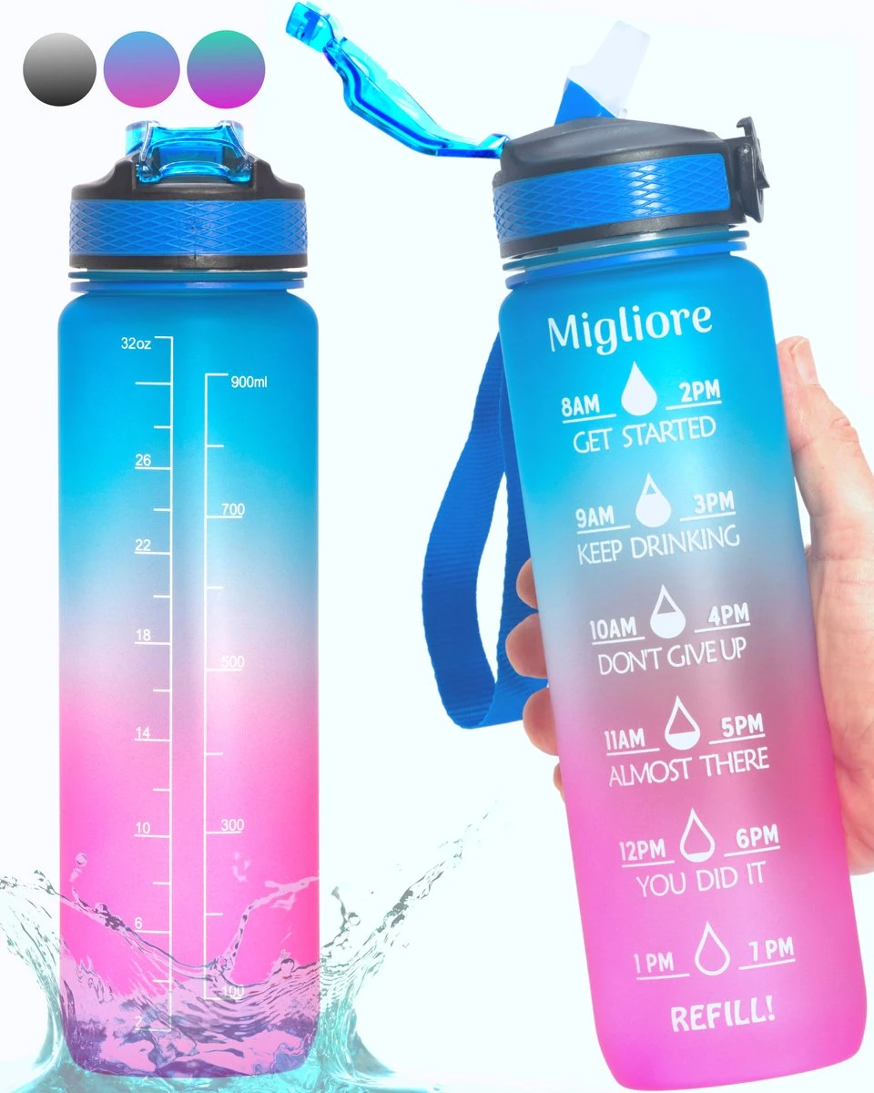 Drink elke dag genoeg water met de Migliore Bidon. Inclusief afneembaar Rietje. Het Rietje heeft een zeer snelle waterstroom en is ook gemakkelijk schoon te maken in de vaatwasser. Met de inspirerende quotes wordt je dagelijks gemotiveerd genoeg water te drinken. De Fles is gemakkelijk mee te nemen en ideaal voor in de sportschool, andere sport activiteiten en ook thuis en op kantoor. Met een inhoud van 1 liter hoef je de fles maar 1 keer bij te vullen zodat u gemakkelijk aan 2 liter water per dag komt. Blijf gehydrateerd, blijf gezond!!