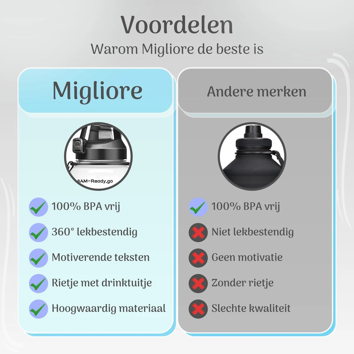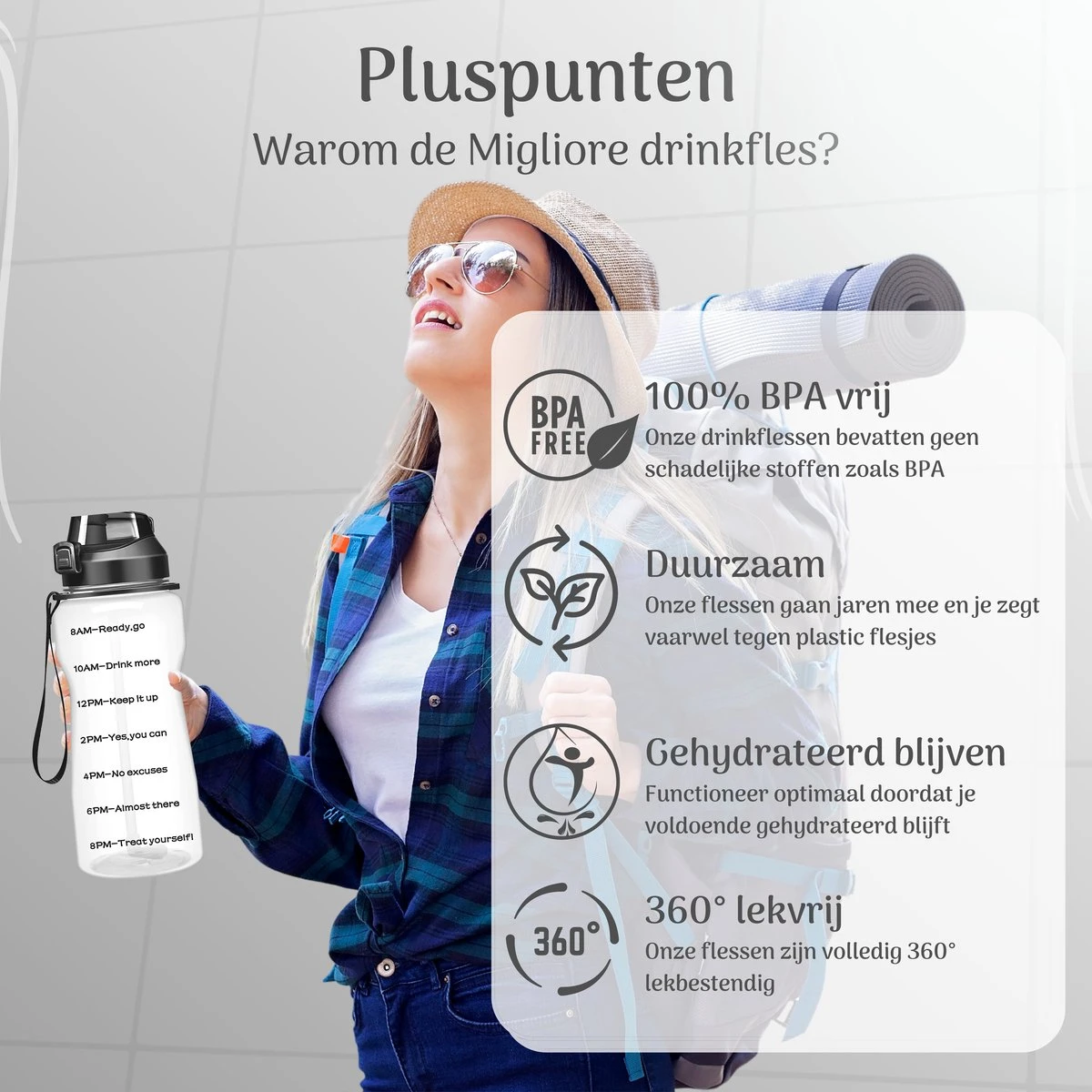 Houd jouw vochtinname en gezondheid in balans! Wacht niet langer en bestel vandaag nog jouw luxe drinkfles, nu besteld is de volgende dag in huis!