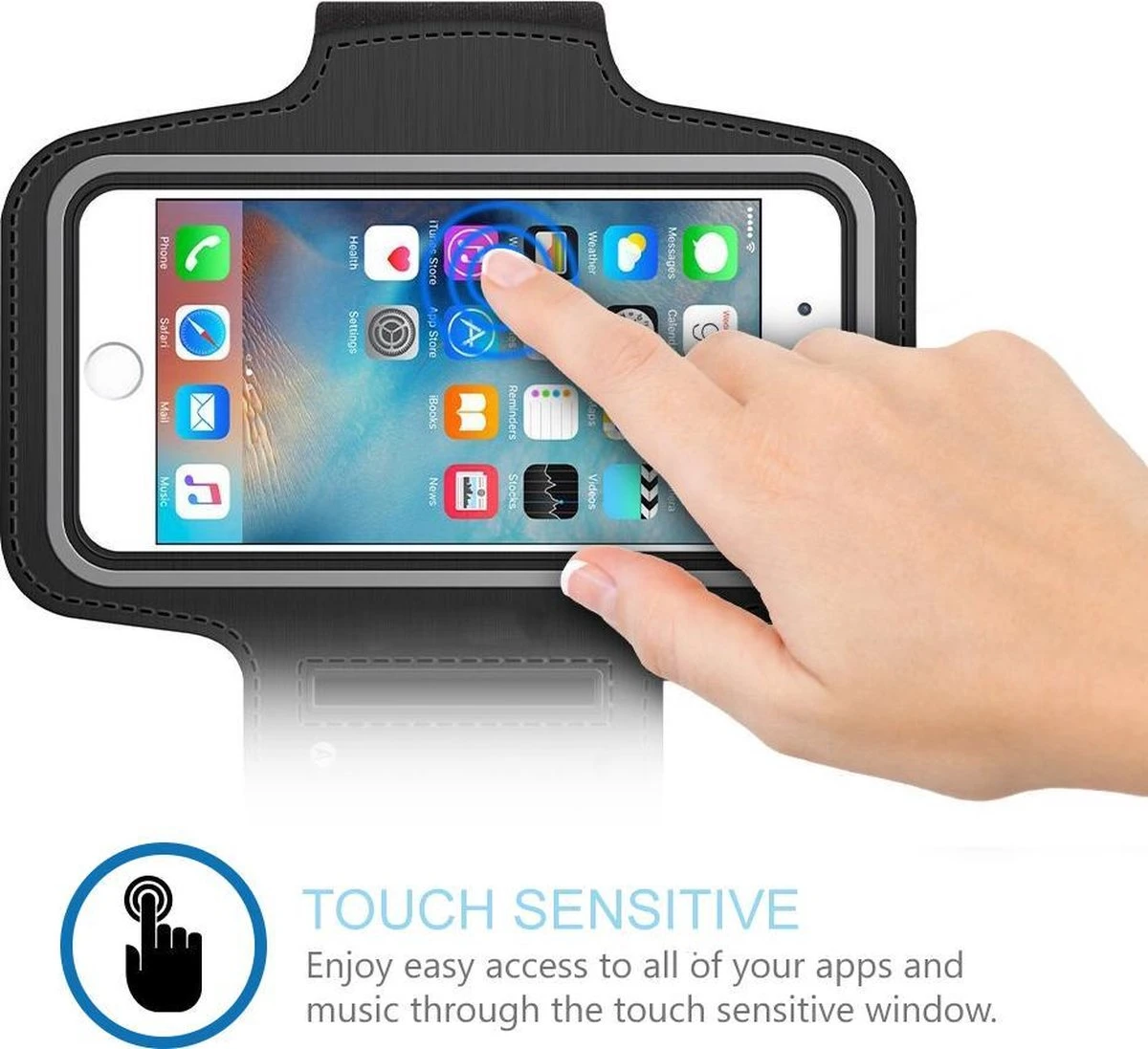 - Dankzij het transparante gedeelte, blijft het mogelijk de telefoon af te lezen terwijl deze in de houder zit. Super eenvoudig als u even snel op uw telefoon wilt kijken. Gefabriceerd met hoge kwaliteit Neopreen voor een comfortabele pasvorm en stretch bij spierspanning zonder knellen of schuurplekken.