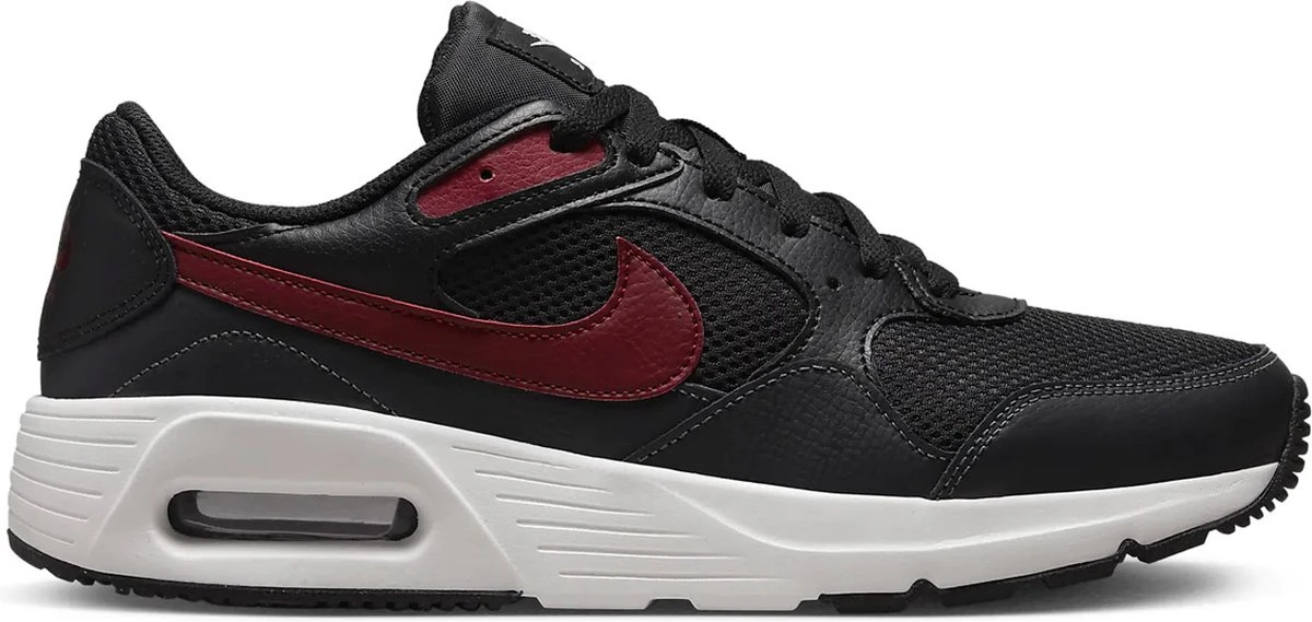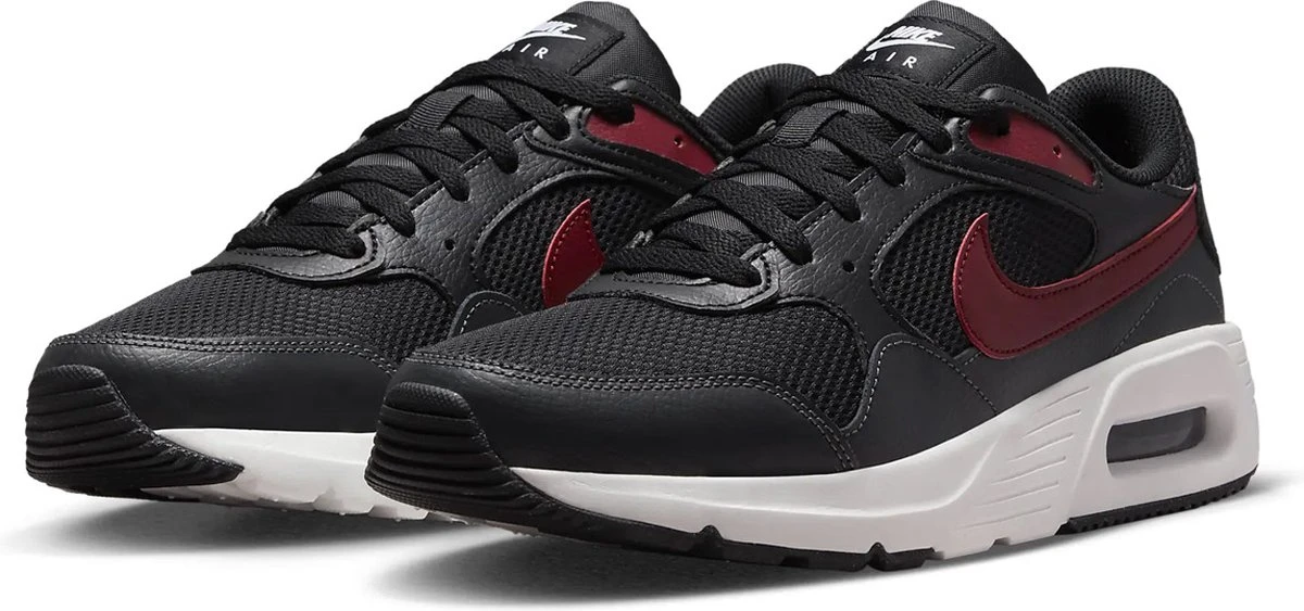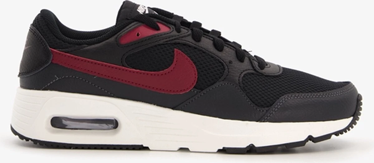 Zwart/rode Nike Air Max SC sportschoenen voor heren. Gemaakt van imitatieleer en textiel met een binnenwerk van textiel en een buitenzool van rubber. Het ademende bovenwerk is van mesh, wat zorgt voor ventilatie en extra comfort. De Air Max unit zorgt voor demping bij elke stap die je neemt. Voorzien van het iconische Nike merkopdruk op de zijkanten en op de tong. In de Nike Air Max SC kan je heerlijk sporten, maar je kan ze ook casual dragen onder een spijkerbroek. Binnenzool is niet uitneembaar.
