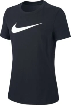 Nike Dri-FIT Crew shirt dames zwart is uitermate geschikt uw sportprestaties naar een volgend niveau te tillen. Het shirt van Nike is voorzien van het bekende Dry-materiaal waardoor transpiratievocht snel kan worden afgevoerd om het lichaam en de stof koel en droog te houden gedurende uw activiteit. Op de borst is een groot Swoosh-logo aangebracht voor een sportief design. Dankzij de ronde hals en korte mouwen van het Dri-FIT Crew-model wordt een comfortabele pasvorm gecreëerd. * Til sportprestaties naar een volgend niveau* Dry-materiaal* Houdt het lichaam en de stof koel en droog * Ronde hals * Korte mouwen * Comfortabele pasvorm Materiaal: 58% katoen, 42% polyester Bestel het Nike Dri-FIT Crew shirt voor dames nu eenvoudig online! Nike maattabel dames Size XS S M L XL XXL Borstkas (cm) 76 – 83 83 – 90 90 – 97 97 – 104 104 – 114 114 – 124 Taille (cm) 60 – 67 67 – 74 74 – 81 81 – 88 88 – 98 98 – 108 Heupen (cm) 84 – 91 91 – 98 98 – 105 105 – 112 112 – 120 120 – 128 Artikel ID: AQ3212-011