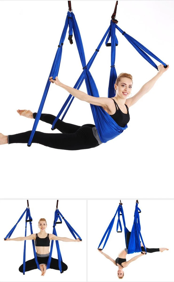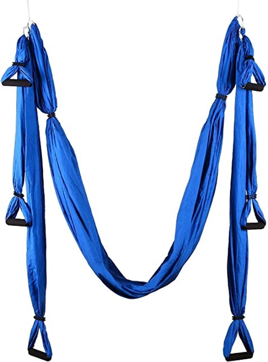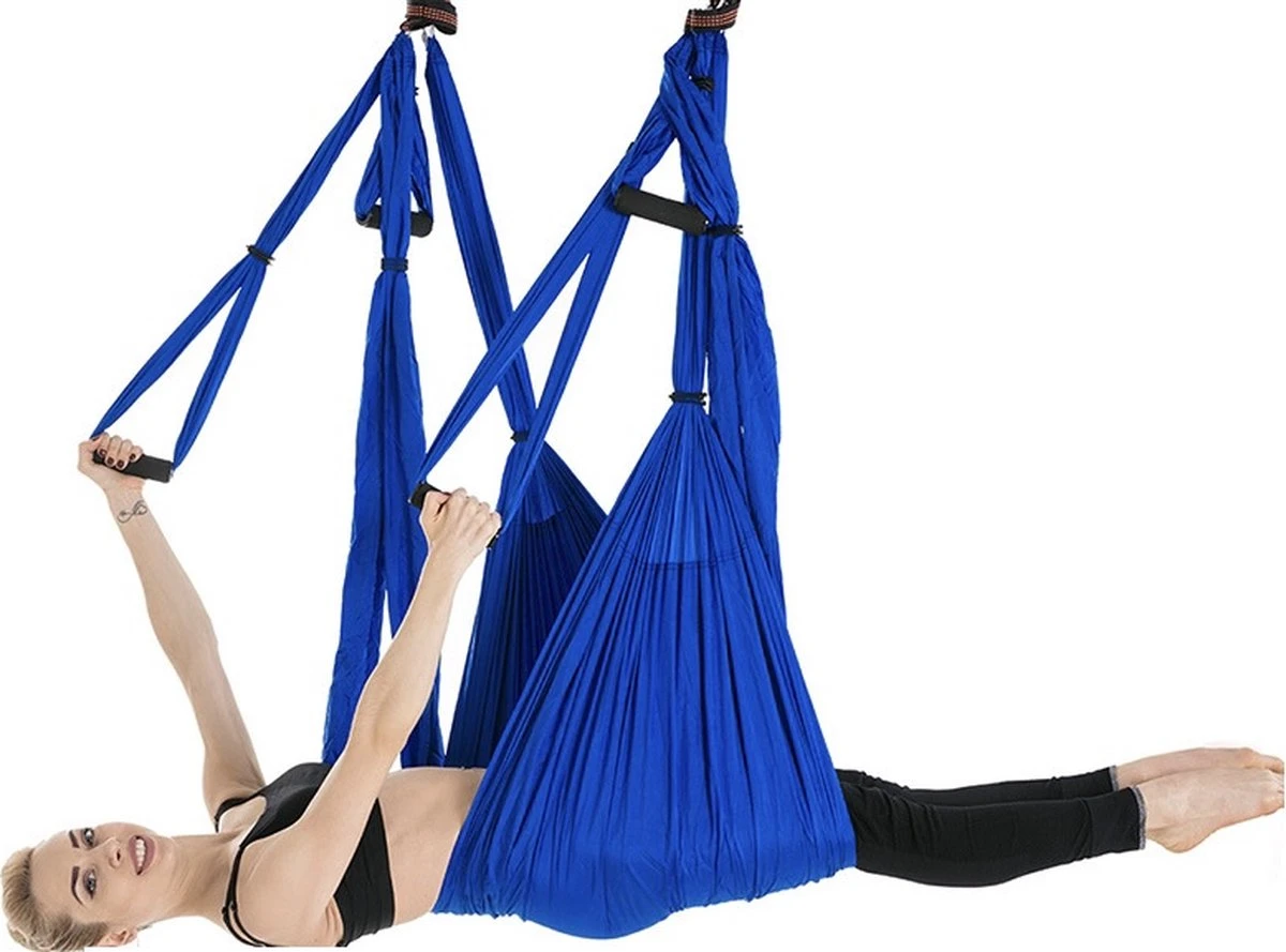 Deze yoga hangmat is ideaal voor de gevorderde yoga beoefenaar. Door gebruik te maken van de verschillende doeken en handvaten kunt u de meest uitdagenden yoga bewegingen maken. Nu niet alleen op de vloer maar in de lucht! Yoga krijgt letterlijk een extra dimensie.