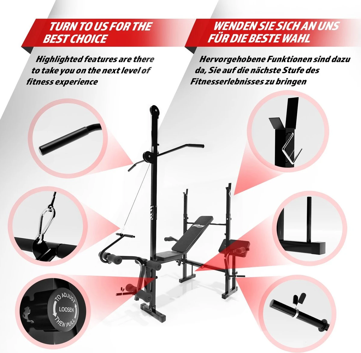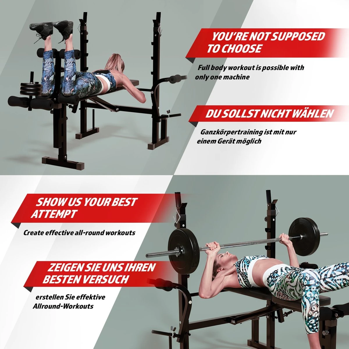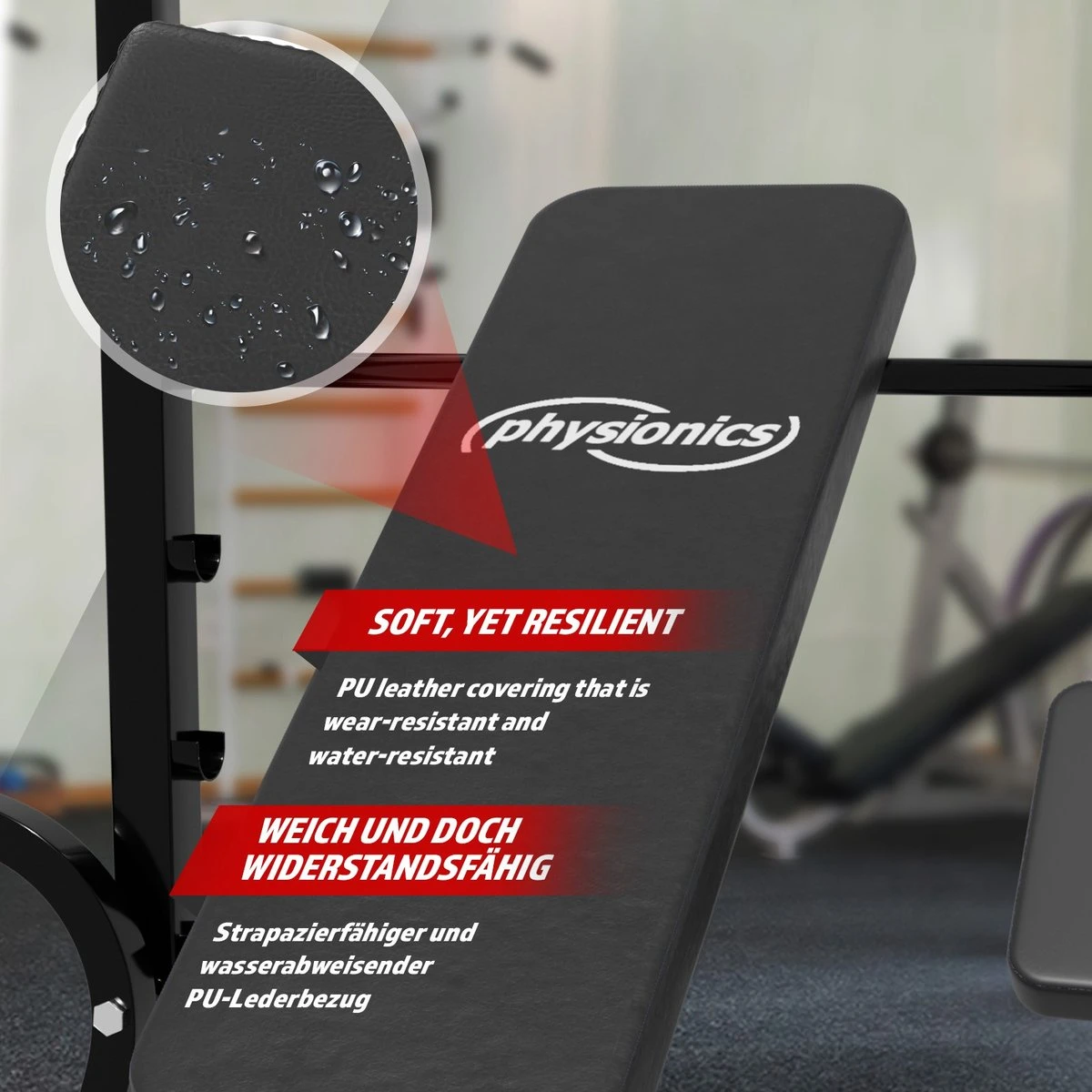 Physionics – Multifunctionele Halterbank – Trainingsbank – Krachtstation – Trainingsstation – Halters – Halterset – Verstelbaar