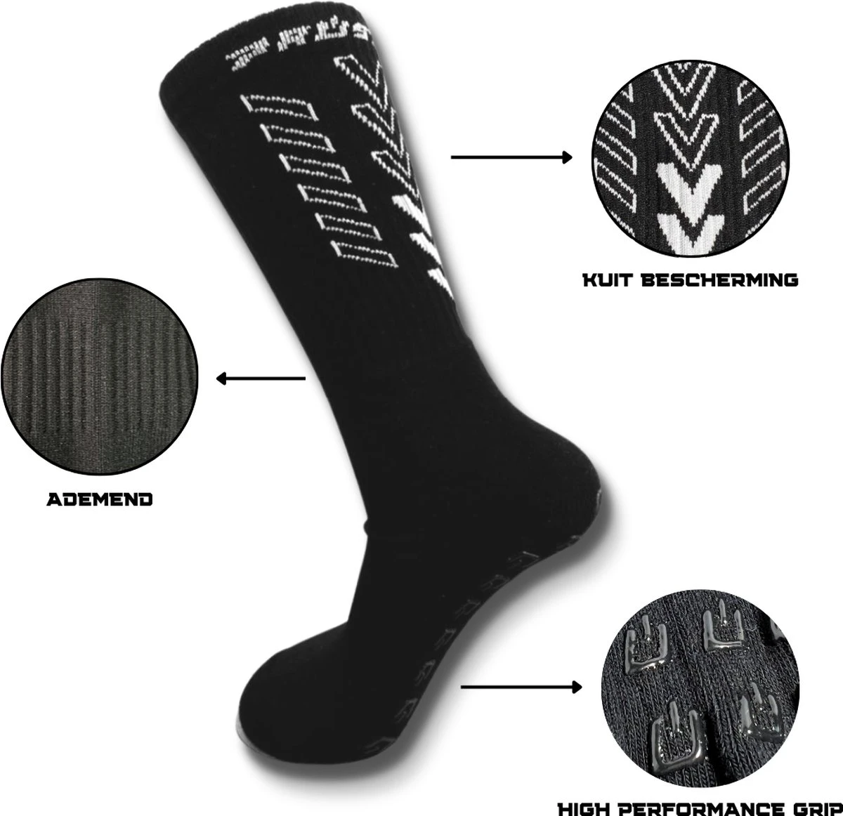 De Prostec gripsokken zijn ontworpen door professionals, zodat jij je sportprestaties kunt verbeteren. Naast het strakke design bieden de Prostec gripsokken meerdere voordelen. Zo zijn de gripsokken door een speciale samenstelling van verschillende materialen zeer comfortabel en enorm elastisch. Om deze reden zullen de one size gripsokken de pasvorm van je voet aannemen, waardoor deze altijd perfect passend zullen zijn. Ongeacht welke sport je beoefend, of jou sport nou voetbal, padel, tennis, fitness, basketbal, hardlopen is, de Prostec gripsokken zullen jouw prestaties naar een hoger niveau tillen en eventuele klachten en pijntjes verminderen. Door de high performance grip badges onderaan de sok zal de wrijving tussen je voet, sok en schoen drastisch verminderen. Dit zorgt voor extra balans en vermindert eventuele voetpijn en blaren.