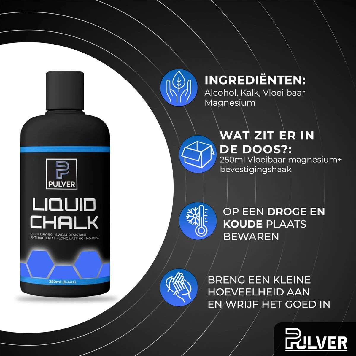 Gebruik jij chalk, maar ben jij klaar met de poedervorm? Dit is ideaal voor jou.. vloeibaar magnesium. Hierdoor heb jij 100% meer grip, de formule is zo gemaakt dat het niet smeert, en de vloeibare magnesium blijft goed op jouw handen zitten.