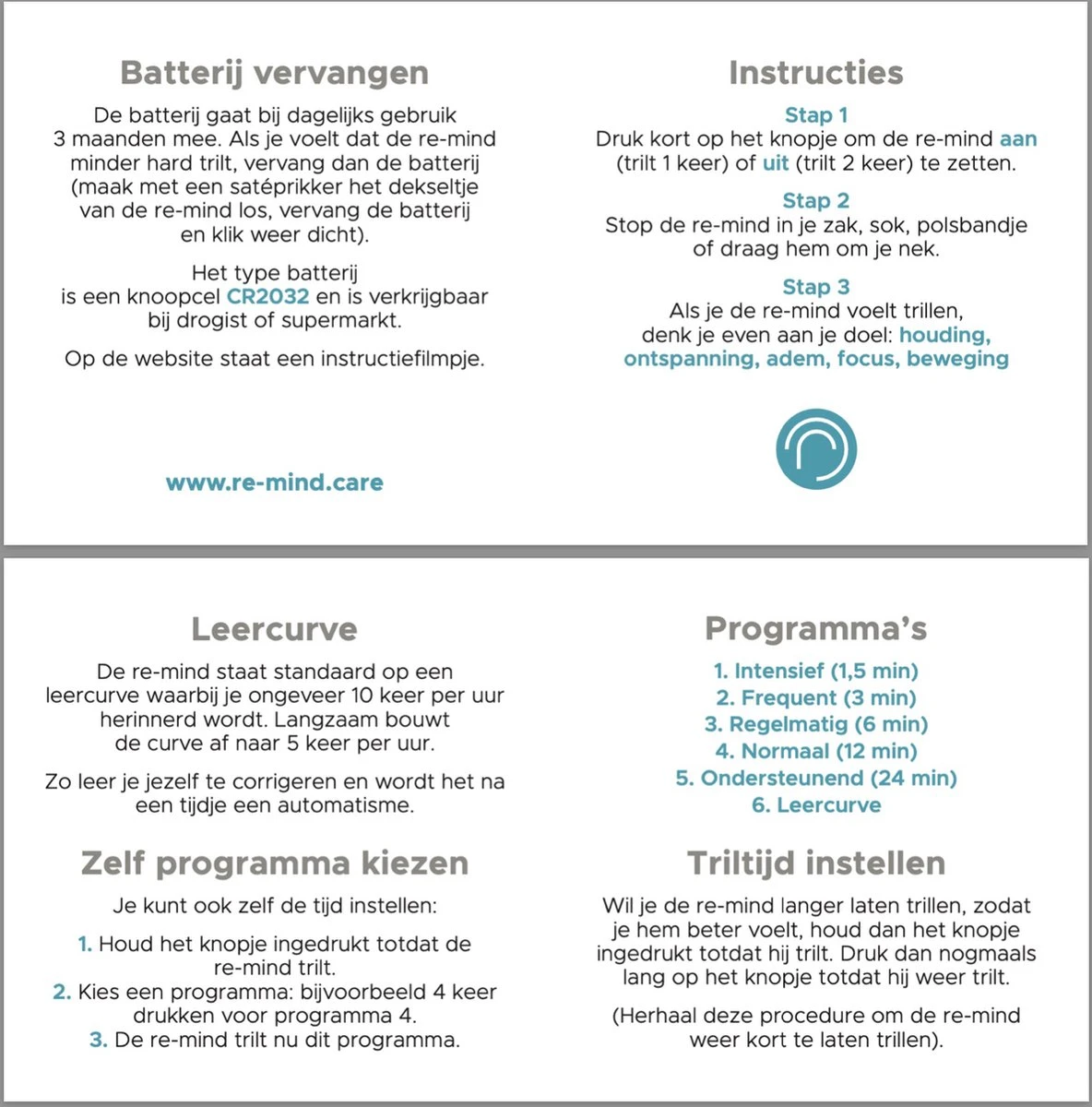 Als de Re-Mind trilt in je zak dan weet je direct: dit is voor mijn houding en ontspanning. Je hoeft er niet over na te denken. Het leidt ook niet af van waar je mee bezig bent. Een goede en bewezen oplossing!