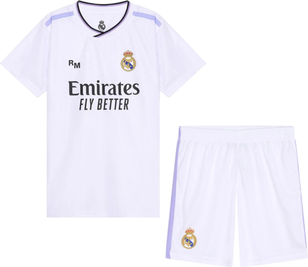 Real Madrid thuis tenue 22/23 Scoor het Real Madrid thuis tenue 22/23 voor kinderen bij Voetbalfanshop! Wie droomt er niet van de koninklijke? Supersterren als Ronaldo, Zidane, Beckham hebben allemaal het witte tenue van Real Madrid gedragen! Geen wonder dat er zoveel fans van Real Madrid overal op de wereld te vinden zijn. Het goedkope Real Madrid voetbaltenue voor kinderen is perfect voor een potje voetbal of om lekker op de bank te dragen! Het tenue is gemaakt van 100% Polyester, hierdoor voelt het lekker licht aan en is het makkelijk schoon te maken. Het voetbaltenue voor kinderen bestaat uit een voetbalshirt en voetbalbroekje. Kenmerken * HERKENBAAR DESIGN: Het iconische Real Madrid logo vind je terug aan de linkerzijde van het shirt. * COMPLEET VOETBALTENUE: Dit Real Madrid thuis tenue bestaat uit een shirt en broekje, klaar om in te bewegen! * COMFORTABEL: Het Real Madrid tenue is gemaakt van 100% polyester. Gemakkelijk schoon te maken en comfortabel om te dragen! * OFFICIEEL CLUBTENUE: Deze Real set hoort bij de officiële Real Madrid merchandise collectie. Daardoor is kwaliteit een garantie. Kampioenen van Europa Real Madrid wist afgelopen seizoen voor de 14de keer de Champions League te winnen! Geen club won zo vaak de Champions League en is misschien wel de grootste club ooit. Gaat het de koninklijke met Karim Benzema, VinÃcius Júnior en Modrić dit jaar ook weer lukken om de Champions League naar Madrid te halen? Het Real Madrid thuis tenue zou dan zo maar een legendarisch tintje kunnen krijgen.