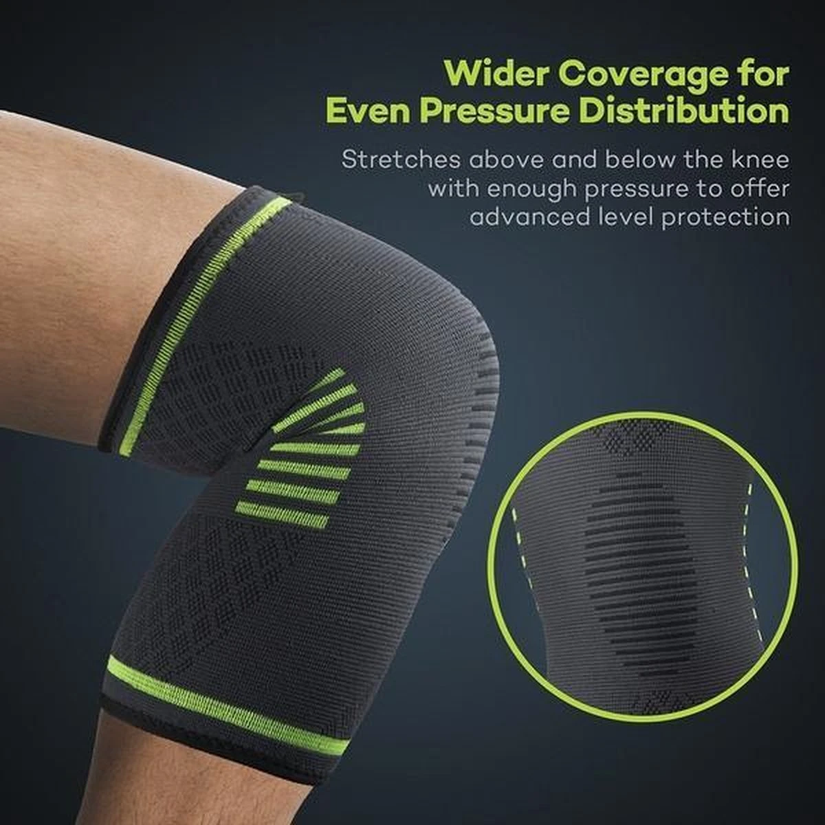 Bredere dekking voor gelijkmatige drukverdeling: strekt zich boven en onder de knie uit met een gelijke drukverdeling om geavanceerde niveaubescherming te bieden.