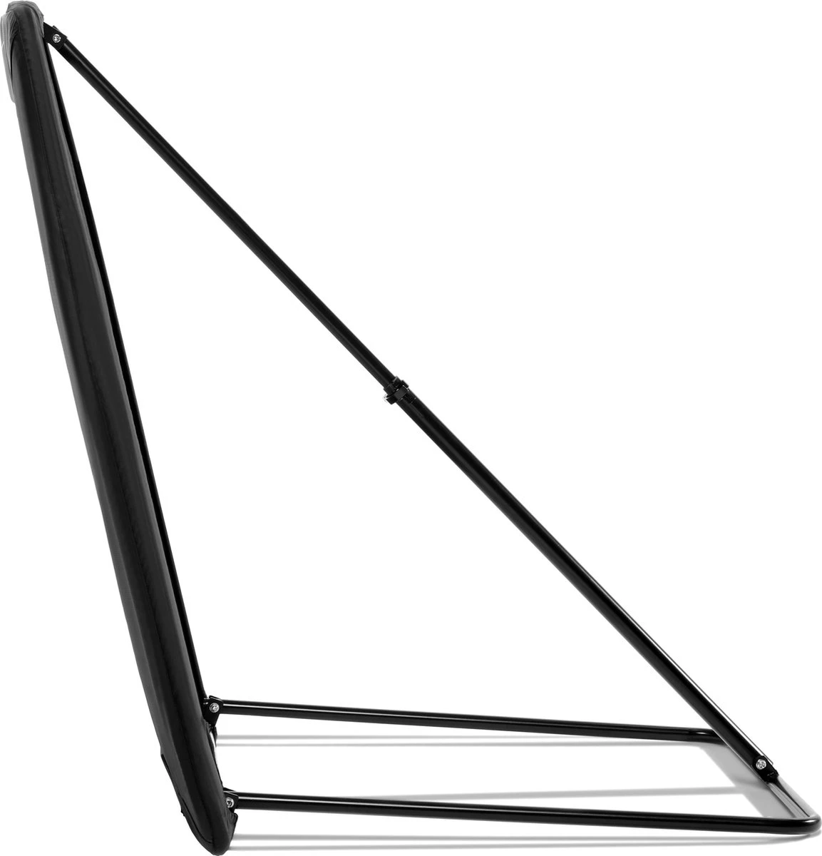 Het robuuste frame van de rebounder is gemaakt van gegalvaniseerd staal met een matzwarte coating voor dubbele bescherming tegen eventuele oxidatie. Het duurzame frame is voorzien van een sterk en weerbestendig nylon net dat door middel van gegalvaniseerde veren stevig op de plek wordt gehouden. Daarnaast zorgt de veerkracht van het net voor een krachtige terugkaatsing van de bal.