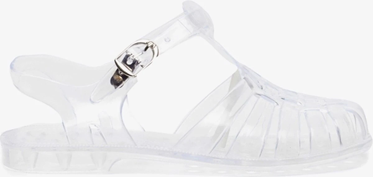 Transparante waterschoen voor dames en kinderen. De waterschoenen hebben een verstelbare gespsluiting.