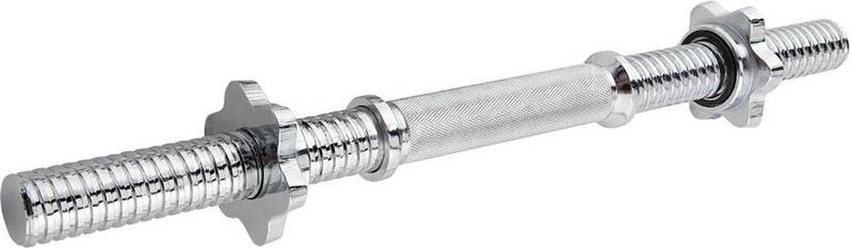 De halterstangen in deze set zijn gemaakt van massief, verchroomd staal. Hierdoor hebben ze een hoge belastbaarheid tot wel 50 kg per stuk. Dit maakt ze ideaal voor intensieve training van bijvoorbeeld je borst-, schouder- en armspieren. De halterstangen zijn voorzien van geribbelde greepvlakken waardoor je gedurende je hele training goede grip hebt.