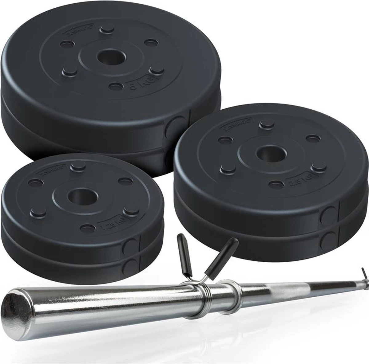 - Totaalgewicht set (incl. halterstang): 20 kg