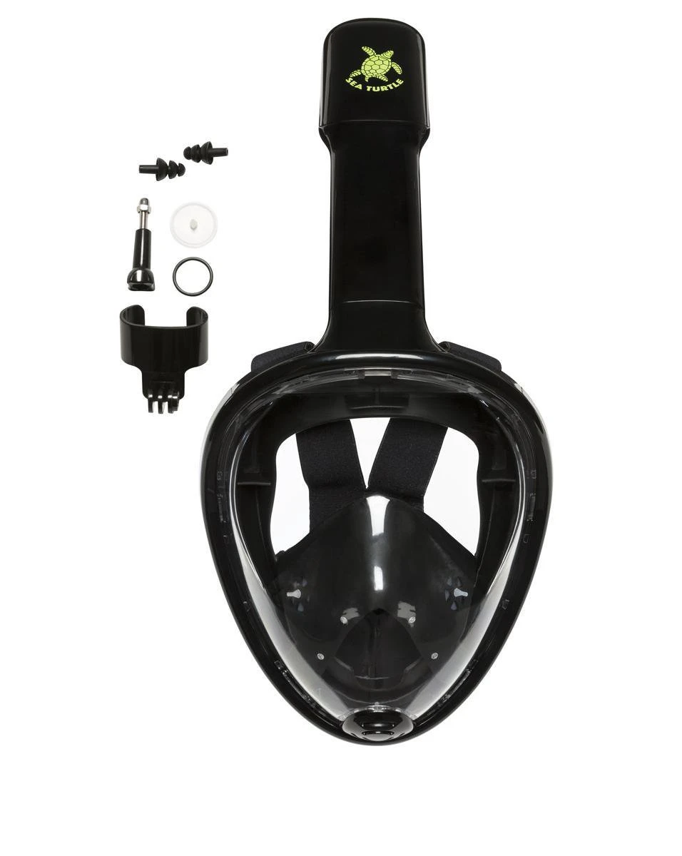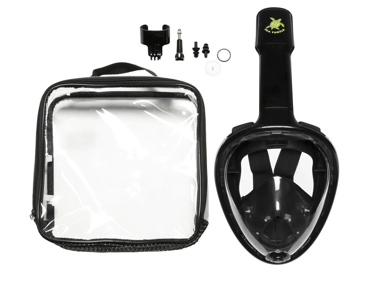 Het Sea Turtle snorkelmasker is geschikt voor snorkelen aan de wateroppervlakte. Door het unieke ontwerp van dit full face masker adem je gewoon door je neus en mond. Ga je onder water dan sluit de dry top af waardoor er geen water in je snorkelmasker komt.