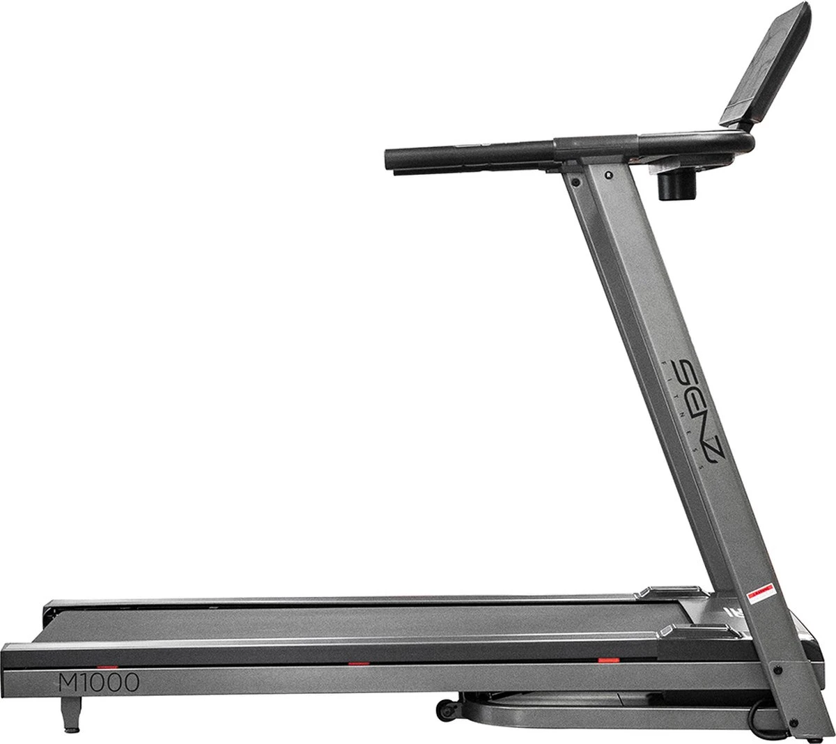De M1000 is één van de nieuwe loopbanden van Senz Sports. Met een ruime variatie aan trainingsprogramma’s, een modern LED-display en een groot loopoppervlak is de M1000 een uitstekende loopband voor thuissporters. Daarnaast kun je de Senz Sports M1000 eenvoudig verplaatsen als je klaar bent met je training dankzij de transportwieltjes.
