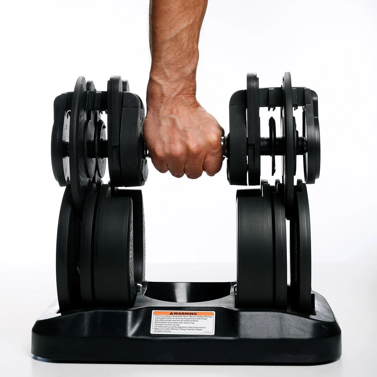 Door met een simpele beweging het handvat te draaien kun je het gewicht aanpassen. Het geselecteerde gewicht wordt weergegeven in het venstertje naast het handvat (zowel in KG als in LBS). De ‘plates’ die je niet gebruikt blijven automatisch in de standaard staan.