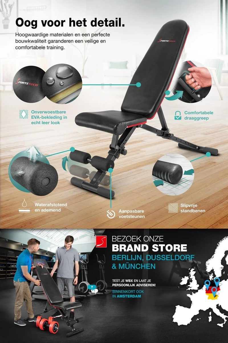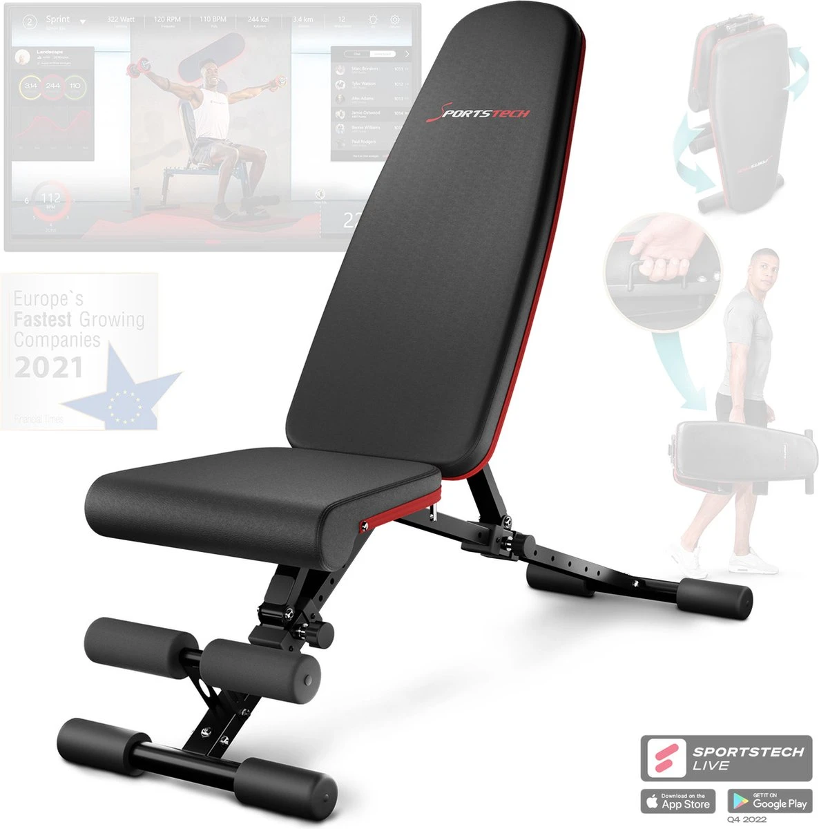 - ✅ : Sportstech levert een uniek, veelzijdige halterbank met EASY FOLDING systeem voor je fitness-workout compleet opgebouwd naar huis. Het lastige opbouwen hoort tot het verleden. Pak de compacte halterbank gewoon uit en begin met je training! Eenvoudiger gaat het niet.