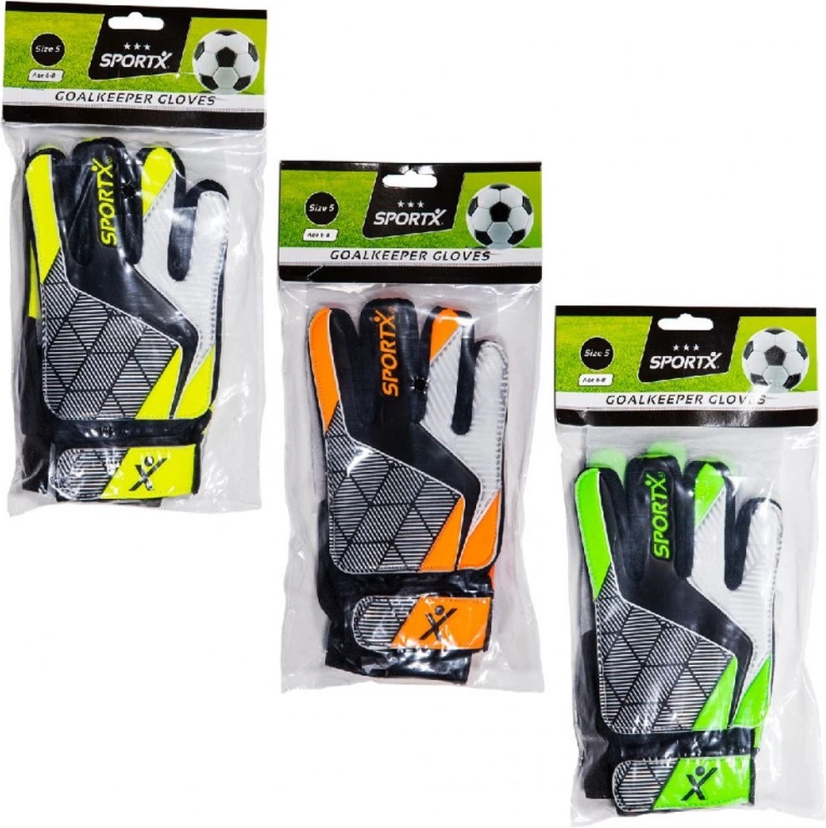 SportX keepershandschoenen maat 5. De ideale handschoen voor elke beginner met zachte schuimrubber vulling. Optimale pasvorm, vaste grip. Geschikt voor kinderen van 6 tot 8 jaar. Verkrijgbaar in verschillende uitvoeringen. U kunt niet kiezen, maar ontvangt een willekeurige uitvoering.