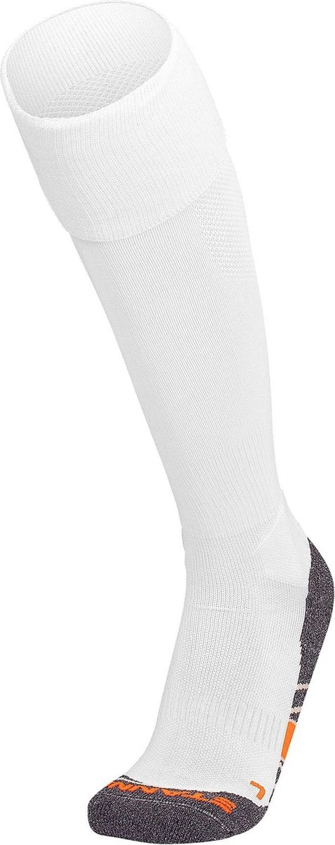 Uni Sock II van Stanno in de kleur wit, geschikt voor heren en dames. Deze hoge kousen van Stanno zijn gemaakt van ‘high stretched’ polyester, voor de beste pasvorm. Op het scheenbeen is de Uni Sock II extra rekbaar, zodat de scheenbeschermer eenvoudig geplaatst kan worden. Voor optimaal ademend vermogen is de sok op de kuit voorzien van een mesh-inzet. Rondom de enkel heeft de sok een beschermende impact zone. En ter voorkoming van schuren en dus blaren is de sok voorzien een platte zoom en van een versterkte hiel, zool en teen. Dankzij de dubbele elastische boord blijft de kous goed op de plaats. Deze anatomische gevormde sok is voorzien van een links/rechts-indicatie.