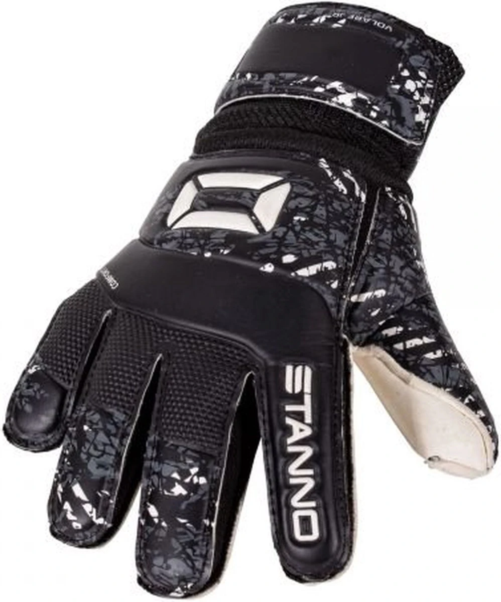 Volare JR van Stanno in de kleur zwart, geschikt voor heren en dames. Junior keepershandschoen met soft foam, voor een betrouwbare grip en uitstekende demping. Het is een flathand model, positief gestikt, waarbij de naadloze binnenzijde maximaal balcontact garandeert. De handschoen heeft een elastische polsband met klittenbandsluiting.