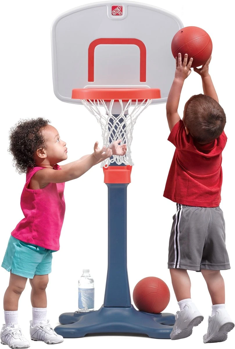 Kleine sportliefhebbers willen al vroeg beginnen dunken met deze Shootin’ Hoops Junior Basketball Set van Step2! Deze verstelbare basketbalring voor kinderen is een geweldig sportspeelgoed voor actief spelen en groeit mee met je kind. De Shootin’ Hoops Junior Basketball Setâ„¢ kan worden gebruikt in een speelkamer of in de tuin. Peuters en kleuters kunnen hun grove motoriek ontwikkelen en trainen terwijl ze rennen, vangen en de basketbal in de hoepel schieten. Kinderen kunnen ook hun sociale vaardigheden verbeteren terwijl ze leren hoe ze samen het basketbalspel kunnen spelen en om de beurt de bal in de hoepel schieten!