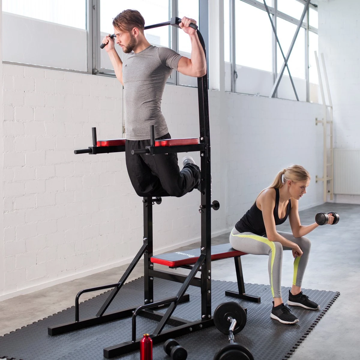 Creëer je eigen fitnesswereld thuis met dit multifunctionele krachtstation. De verschillende trainingsmogelijkheden voor biceps, triceps, borst-, buik- en rugspieren maken een volledige training van je bovenlichaam mogelijk. De stabiele constructie van massief staal en de slipvaste bekleding van slijtvast kunstleer garanderen veiligheid en comfort bij elke oefening. Dankzij het compacte basisframe en de opklapbare halterbank is dit praktische krachtstation ook de perfecte keuze voor kleinere ruimtes – één apparaat, vele mogelijkheden.