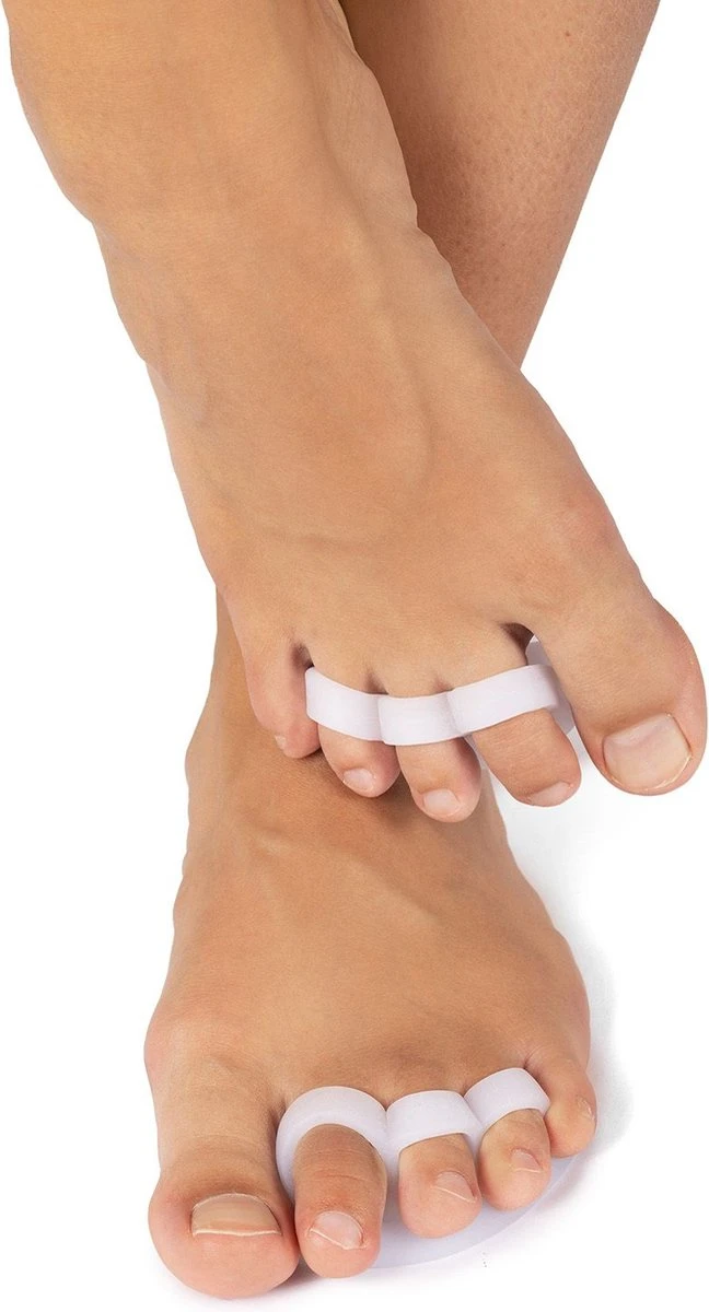 De tenenspreider is speciaal ontworpen voor meedere tenen en ideaal voor over elkaar vallende of langs elkaar wrijvende tenen, hamertenen en bij wintertenen. De tenenspreider voorkomt direct de pijn en corrigeert daarbij ook de teen. De tenenspreider te gebruiken in elke schoen, blijft keurig op z’n plaats zitten en het zachte schuim van de tenenspreider vangt schokken op en beschermt gevoelige plekken. Ideaal voor pijnlijke tenen, hamertenen, hamertenen, wintertenen, wintervoeten, blaren en likdoorns tussen de tenen.