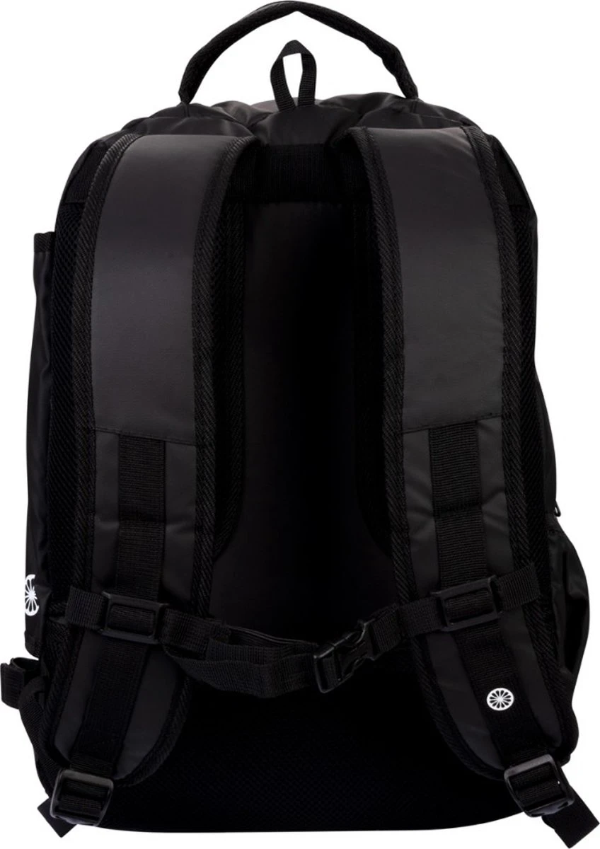 Rugzak PMC is gemaakt van sterk polyester met stevige schouderbanden. Twee ruime compartimenten met voldoende ruimte voor sport kleding, accessoires en zelfs een coachbord of laptop. Aan voorkant twee kleine vakken voor losse spullen en op het rugpaneel een verborgen extra vak voor telefoon of portemonnee. Uit het zicht en snel en gemakkelijk toegankelijk. Verstelbare schouderbanden en gewatteerd rug paneel zorgen voor comfortabele pasvorm en extra draagcomfort. Aan zijkanten vak met elastiek voor bidon en stickhouder voor het eenvoudig bevestigen van een hockeystick. Deze rugzak is niet alleen geschikt voor coaches voor gebruik naar hockeytraining -of wedstrijd maar ook voor gebruik naar school of in de vrije tijd.Afmeting: 33x20x50cm (± 33 ltr)