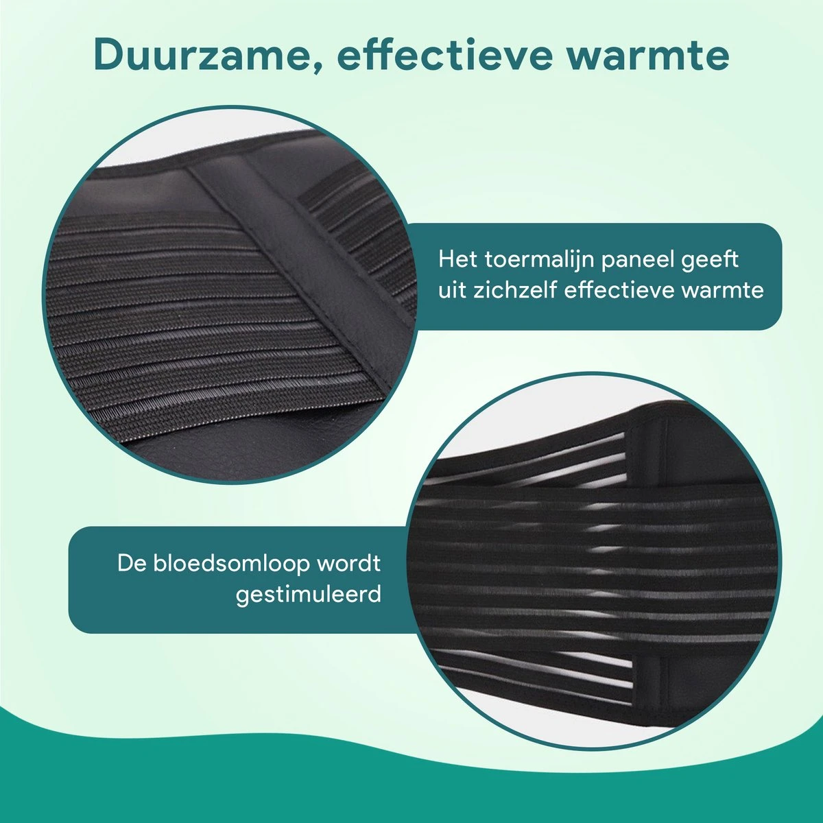 De rugbrace van Trebin is voorzien van een toermalijn paneel. Dit paneel kun je herkennen aan de zwarte stippen aan de binnenzijde van de rugbrace. Toermalijn is een natuurlijk mineraal wat infraroodstralen en negatieve ionen produceert. Dit zal de bloedsomloop verhogen in het gebied waar het toermalijn paneel de huid raakt. Dit zorgt voor een natuurlijk verwarmings effect.