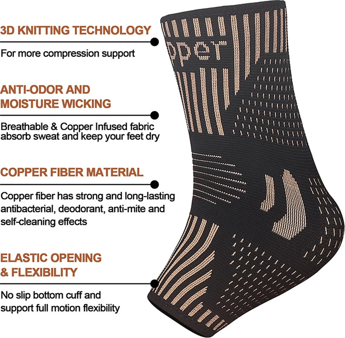 Ademend en comfortabel: onze hoogwaardige koperen nylon is ademend en zeer elastisch, de enkelsteun past strak en comfortabel. Dankzij het ontwerp met open teen kun je ze dragen met schoenen, sokken en meer.