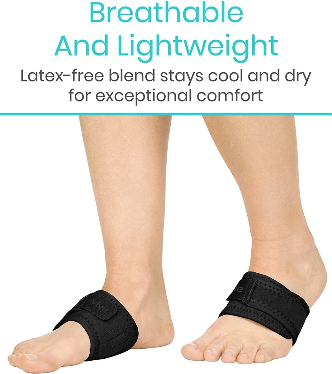 - LICHTGEWICHT EN ADEMEND: De lichtgewicht ondersteuning van de voetboog voegt geen massa toe aan uw voet en past gemakkelijk in de meeste schoenen. De brace is gemaakt van een ademend, latexvrij materiaal en blijft de hele dag koel en droog voor uitzonderlijk comfort.