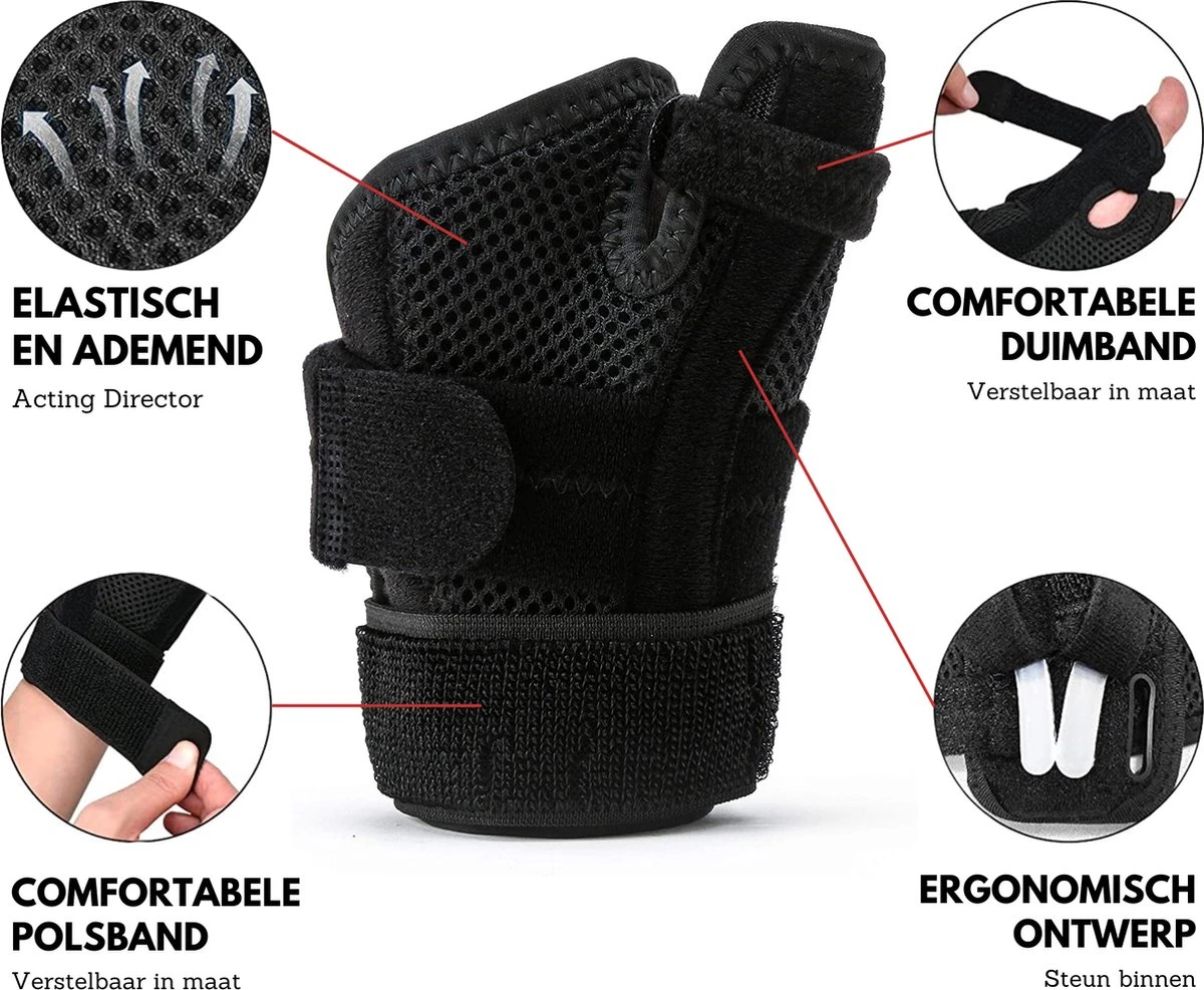 - Krachtige duimspalkbrace – De verbeterde spalk op de duim biedt sterke ondersteuning voor de duim, voorkomt herhaalde schade aan het duimgewricht, verlicht duimpijn en de riem op de duim kan de strakheid aanpassen aan uw behoeften.