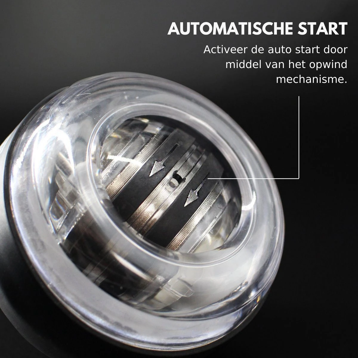 Onze verbeterde polstrainerbal, je hoeft alleen de kern in de richting van de pijl te duwen, duw hem naar boven, laat hem dan snel los en draai je pols zodat je pols meedraait met de rotatie van de kern . De middelpuntvliedende kracht van de kern kan de gyroscoopbal gemakkelijk starten. het zal je een ongelooflijk gevoel geven wanneer de gyro-bal in je hand begint te draaien.