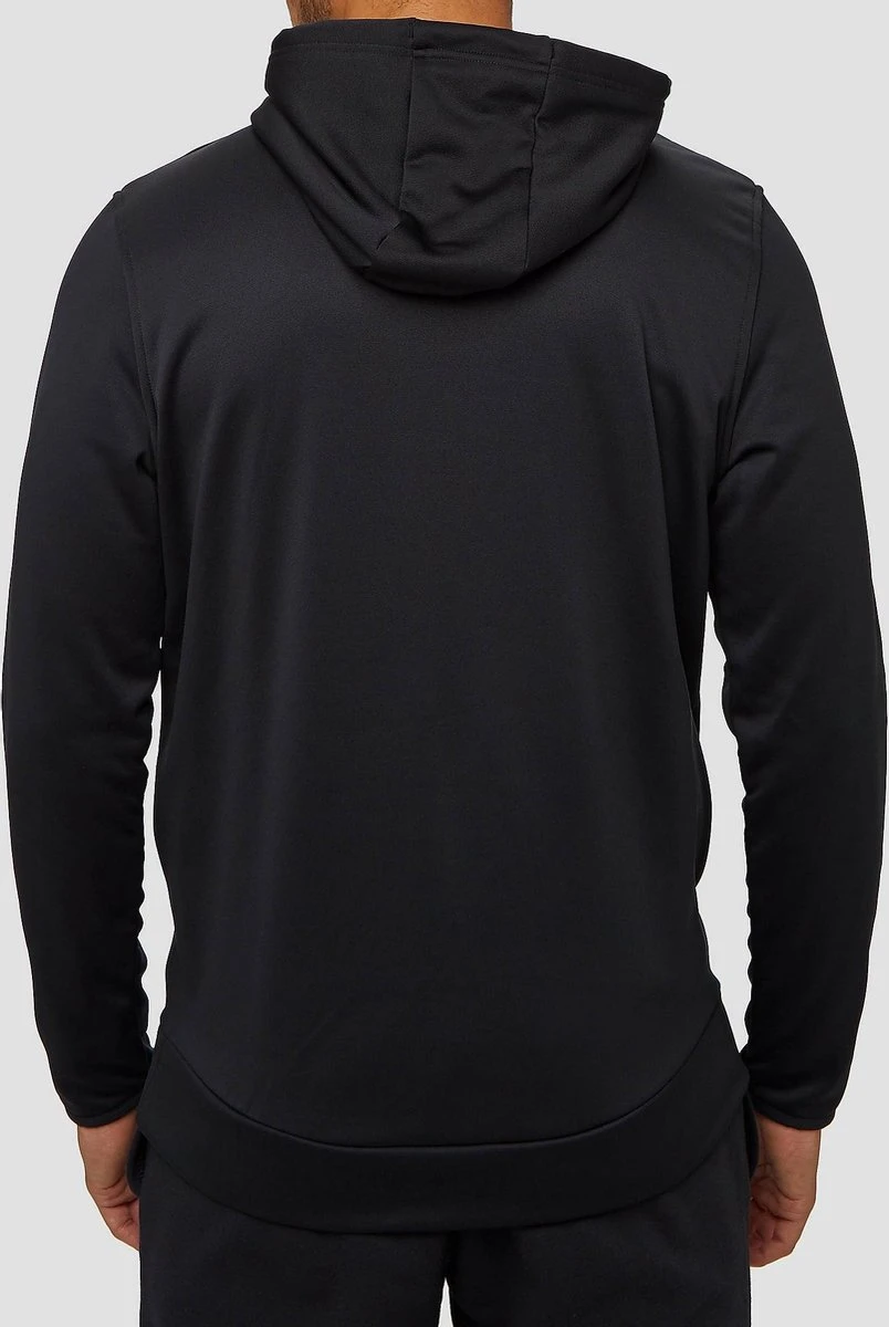 Ervaar comfort en volledige bewegingsvrijheid in de fleece trui van Under Armour. Deze zwarte herentrui is gemaakt van licht, ademend materiaal dat elastisch is zodat je niet belemmerd wordt tijdens je dagelijkse activiteiten. Tegelijkertijd houdt de zachte binnenlaag warmte vast, waardoor je constant een aangenaam gevoel behoudt. Verder is de hoodie voorzien van capuchon, kangoeroezak en elastische manchetten. Op de linkerborst staat het Under Armour-logo.