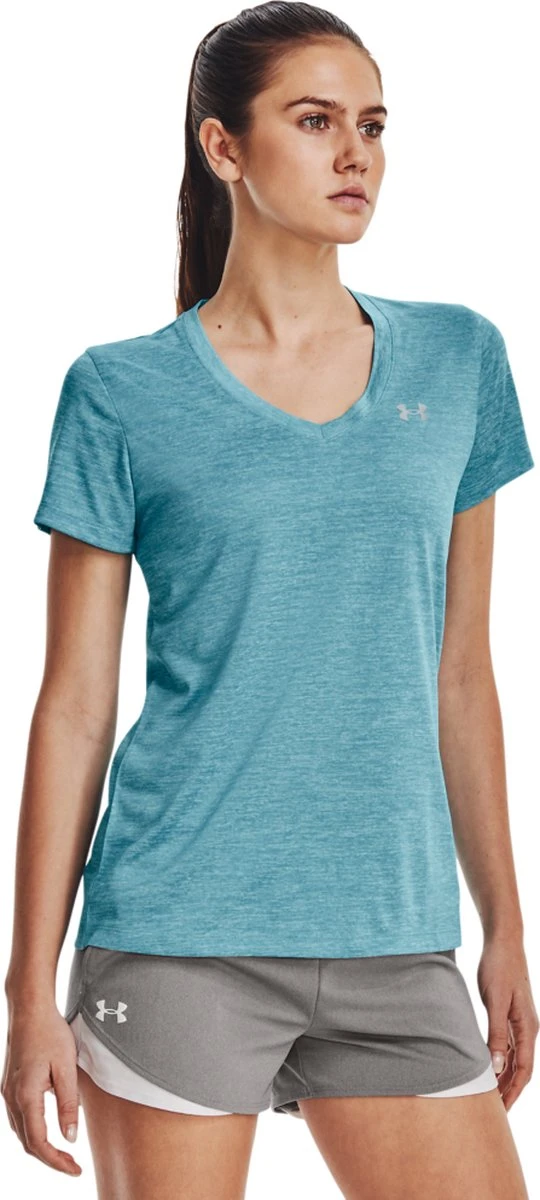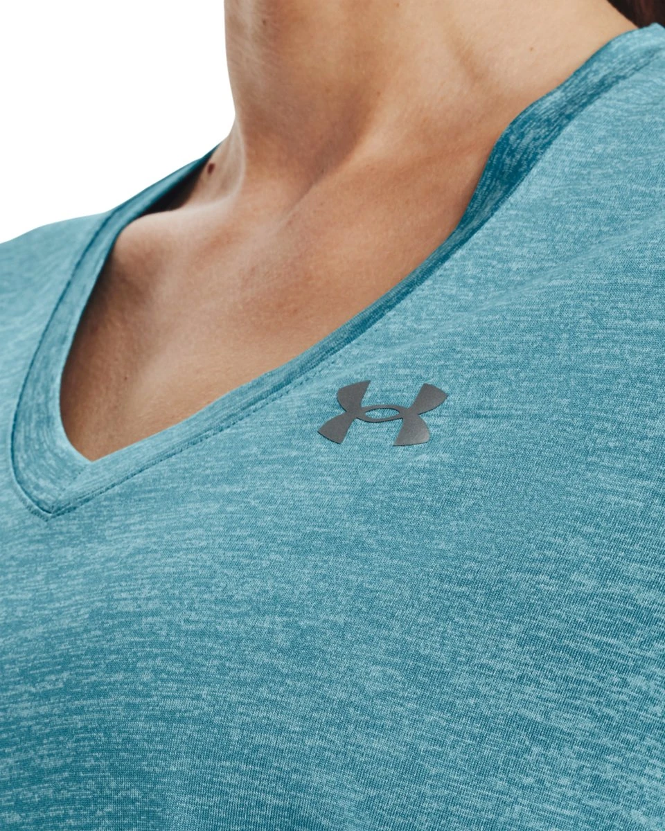 UA Tech™-stof is sneldrogend en voelt zacht en natuurlijk aan;Het materiaal voert zweet af en droogt zeer snel;Materiaal rekt in vier richtingen voor optimale bewegingsvrijheid;Diepe V-hals;Gedraaid effect