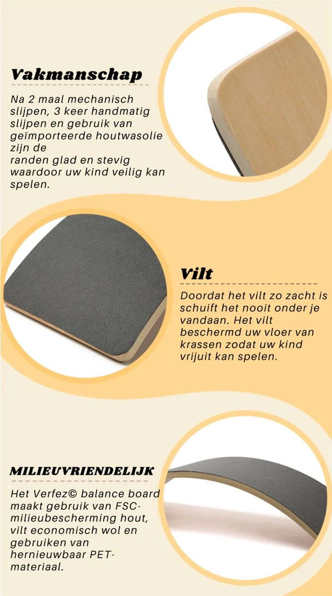 Het balance board van Verfez© is het houten speelgoed dat jong en oud beweegt! Dit “Balance Board” is ideaal voor de allerkleinsten of kids die nog moeite met balanceren hebben. Het bord ondersteunt op een speelse maar zeer doeltreffende manier het lichaamsbewustzijn en het evenwicht.
