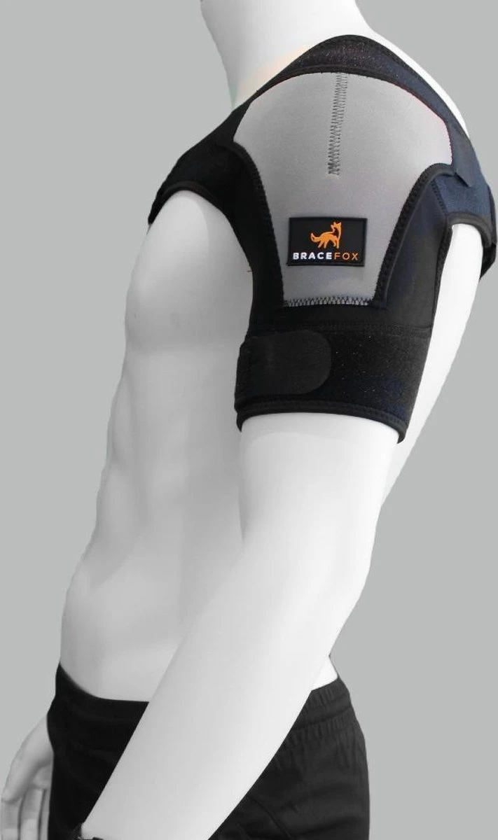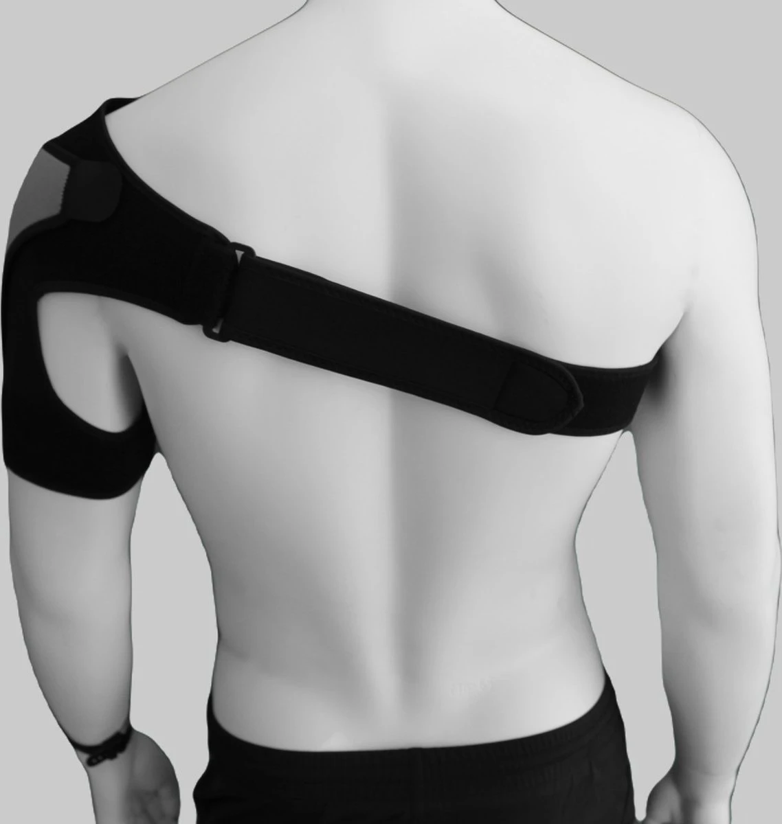 De schouderbrace bestaat uit twee onderdelen en wordt bevestigd middels hoge kwaliteit velcro (klittenband). Deze brace kan gebruikt worden tijdens het sporten.