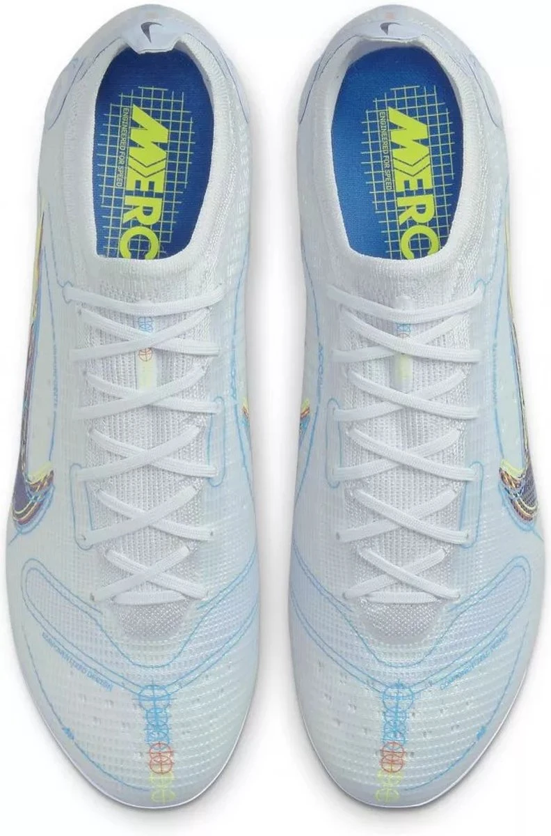 De voetbalschoen wordt gebruikt door de Portugese voetbalster Cristiano Ronaldo. De nieuwe Mercurial is de definitie van technologie, pasvorm, transparantie en snellere beweging, en om het samen te vatten heeft Nike onnodige lagen verwijderd, waardoor de rauwe schoonheid van innovatie wordt onthuld. Het revolutionaire bovendeel van Vaporposite is gemaakt van vier lagen genaamd Duragon WT, Engineered Mesh, Titan Synthetic en Avail Q Lining en het resultaat is een unieke pasvorm en extra goede grip op de bal. De zeven meest prominente en innovatieve details die in de voetbalschoen zijn verwerkt, zijn gemarkeerd met nummers en er zijn namen af te lezen op de binnenzool. Het compressieve Flyknit-materiaal is op de enkel geplaatst, wat helpt om een ​​knus gevoel, een optimale pasvorm en meer flexibiliteit te creëren. Strategisch geplaatste noppen, die met hun schuine vormen en lengte als klauwen fungeren tijdens versnelling en verandering van richting. Deze schoen met FG-noppen is geschikt voor spelen op stevig en droog natuurgras.