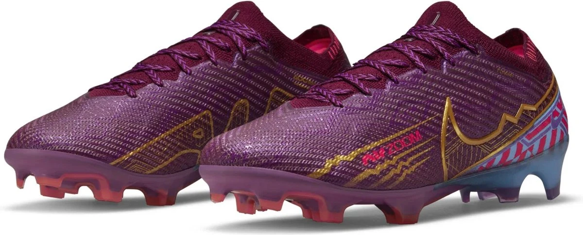 - Nike Zoom Mercurial Vapor 15 Elite KM Gras Voetbalschoenen (FG) Paars Bordeauxrood Goud