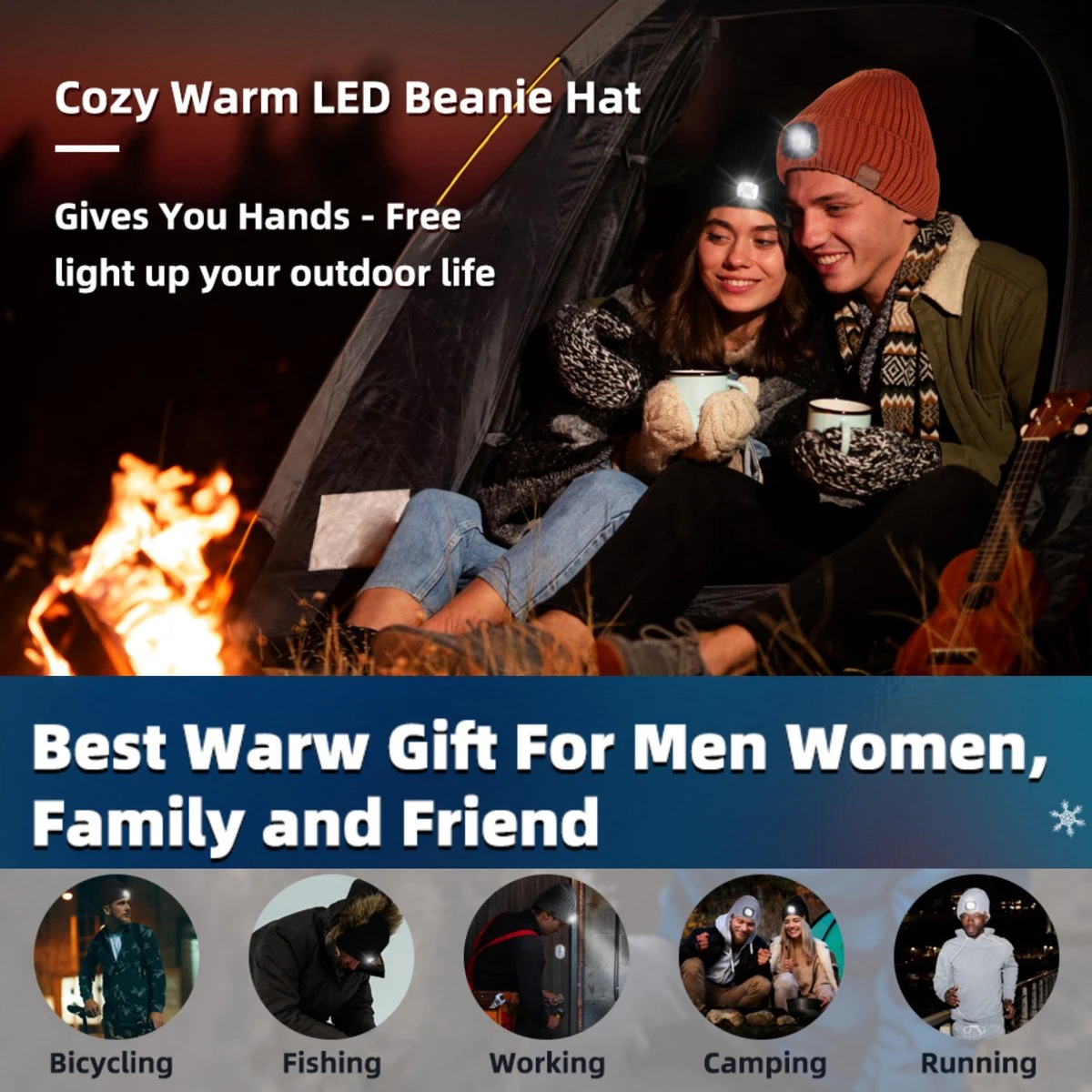 Er zijn 4 werkmodi over draadloze led-muzikale mutsen: gemiddelde helderheid, hoge helderheid, langzaam knipperend, snel knipperend; Elke hoed is uitgerust met 4 hoge lichten, licht tot 30 voet weg – Hoge witte lichtmodus zorgt ervoor dat je ’s avonds of in het donker duidelijk ziet; de knippermodus kan worden gebruikt als alarmlicht, veiliger maken tijdens het werken of sporten in de donkere nacht; De looptijd van de verlichtingshoed kan oplopen tot 7-8 uur door 1,5 uur op te laden.