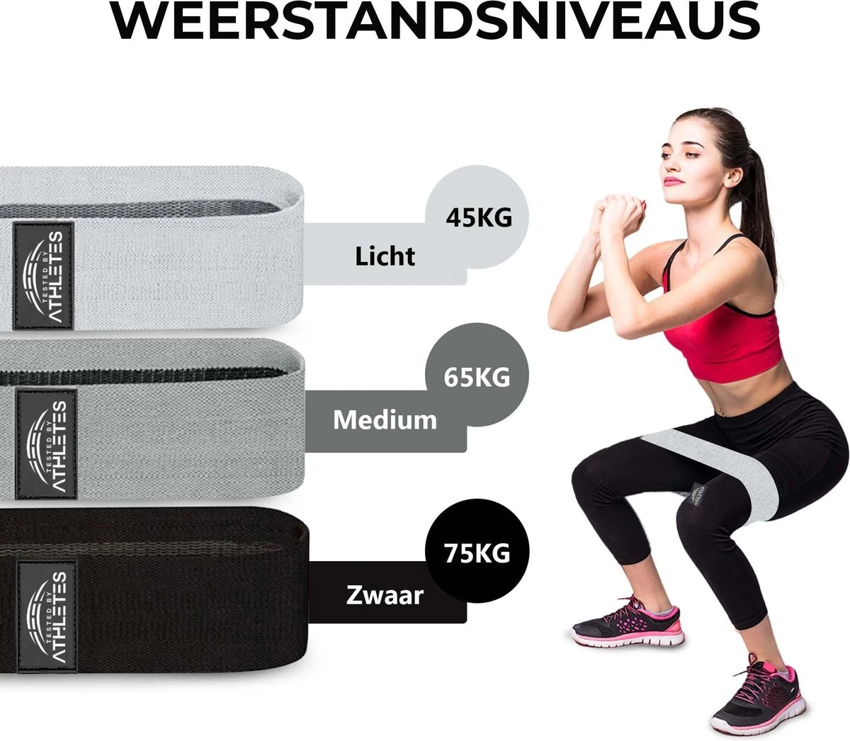Wil jij ook graag strakkere bovenbenen en ronde billen? Wil jij dit zo snel mogelijk bereiken? Dankzij onze Tested by Athletes Weerstandsbanden is dat mogelijk en kan jij waar en wanneer jij maar wilt trainen! Geen dure sportschool abonnement meer nodig, alleen de Tested by Athletes weerstandsbanden. Bestel vandaag nog deze geweldige weerstandsbanden en ontdek jouw sportplezier met behulp van een bijgeleverd E-book!