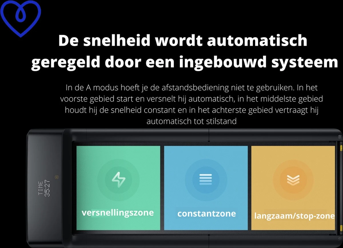 Handig af te stellen – De snelheid is te regelen met de meegeleverde afstandsbediening of via de app waarop u de data kan aflezen. Dit biedt veel mogelijkheden tijdens je workout.