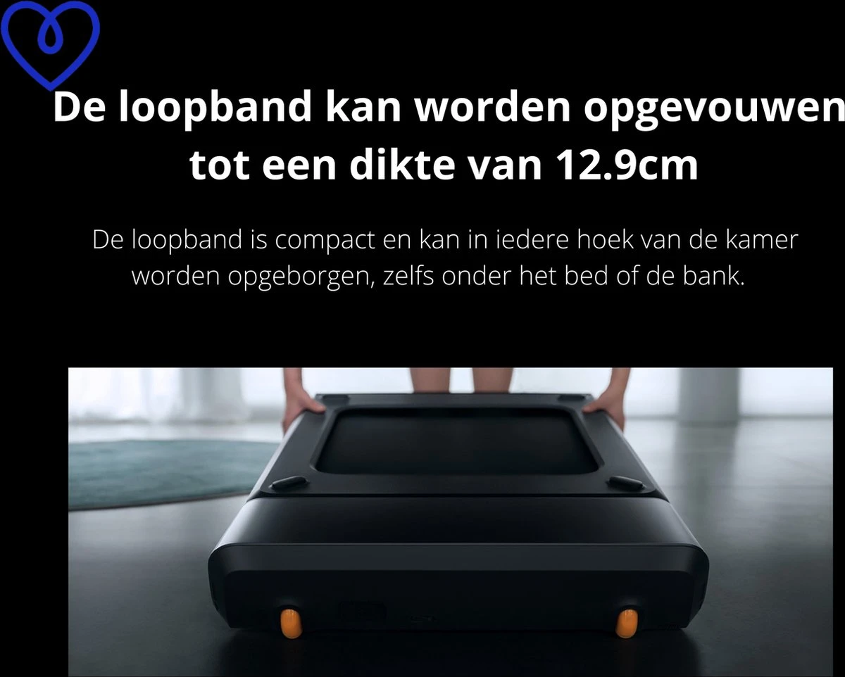 Ruimtebesparend – Het grootste voordeel van deze loopband is de afmeting, veel mensen hebben thuis niet voldoende ruimte om een loopband op te bergen met deze loopband is dat geen probleem meer. De loopband kan worden opgevouwen en onder het bed, kast of andere meubels worden geschoven.