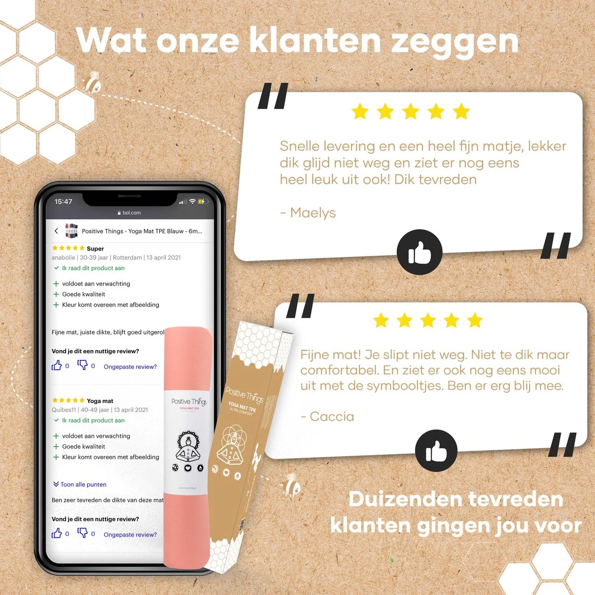 Duurzaam: TPE is enorm slijtvast en gaat erg lang mee. Dit maakt de yogamat van Positive Things extra duurzaam. Ook te gebruiken als trainginsmat voor Fitness.