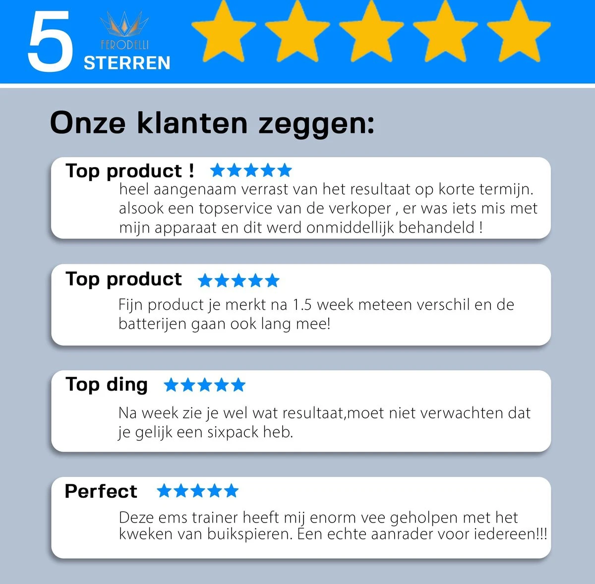 Veel topatleten gebruiken ems trainers naast hun dagelijkse trainingen om zo hun spieren nog meer te stimuleren. Het is dus een bewezen middel, zonder dat dit moeite kost. De ems geeft tril vibraties door, waardoor de spieren geactiveerd en gestimuleerd worden. de elektrische stootjes geven een impuls aan de spieren zodat deze samentrekken. Dit samentrekken geeft hetzelfde effect als alle andere buikspieroefeningen