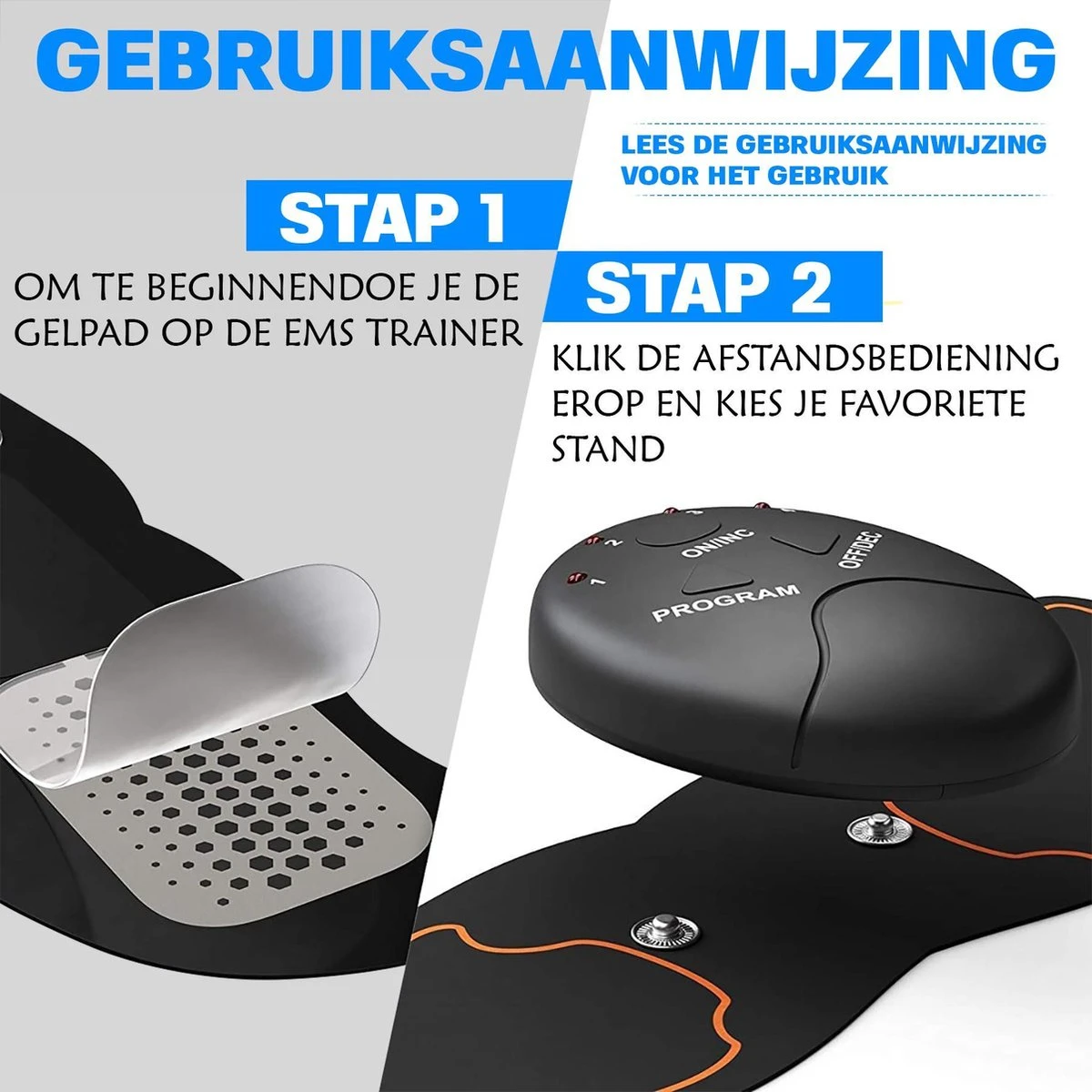 Stap 2: klik de afstandsbediening op de ems trainer en plak hem op je buik.