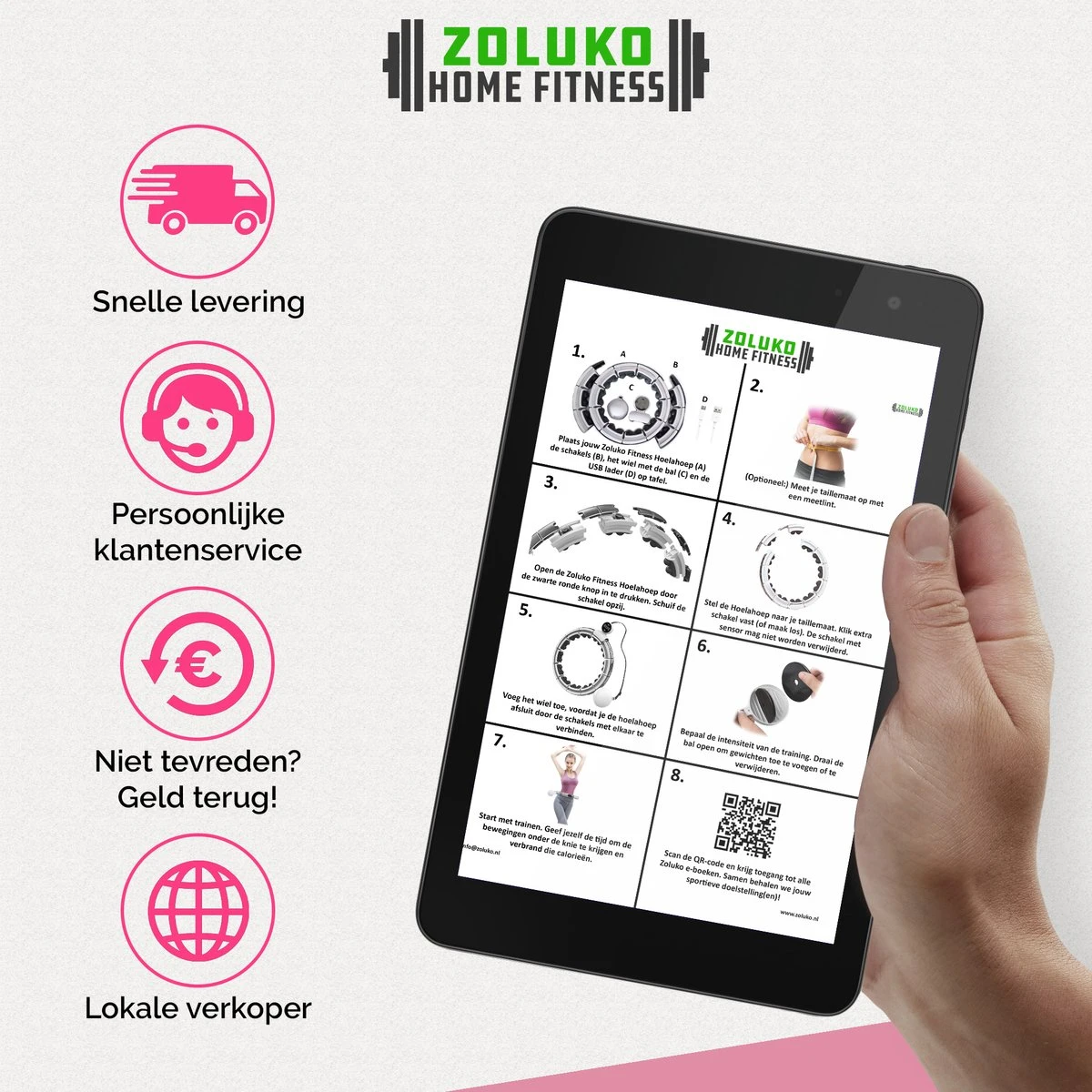 Zoluko is de specialist in thuis sporten en daarom helpen wij jou graag goed op weg. Bij jouw bestelling ontvang je een gratis e-book. Dankzij het bijgeleverde e-book beschik jij over de beste tips, efficiënte oefeningen (met illustraties) en leer je hoe je veel voorkomende fouten kan voorkomen.
